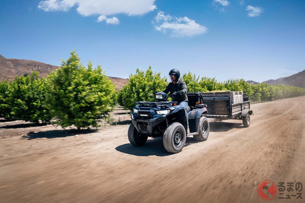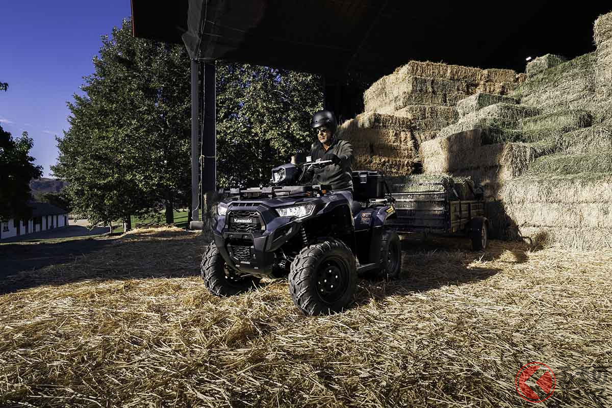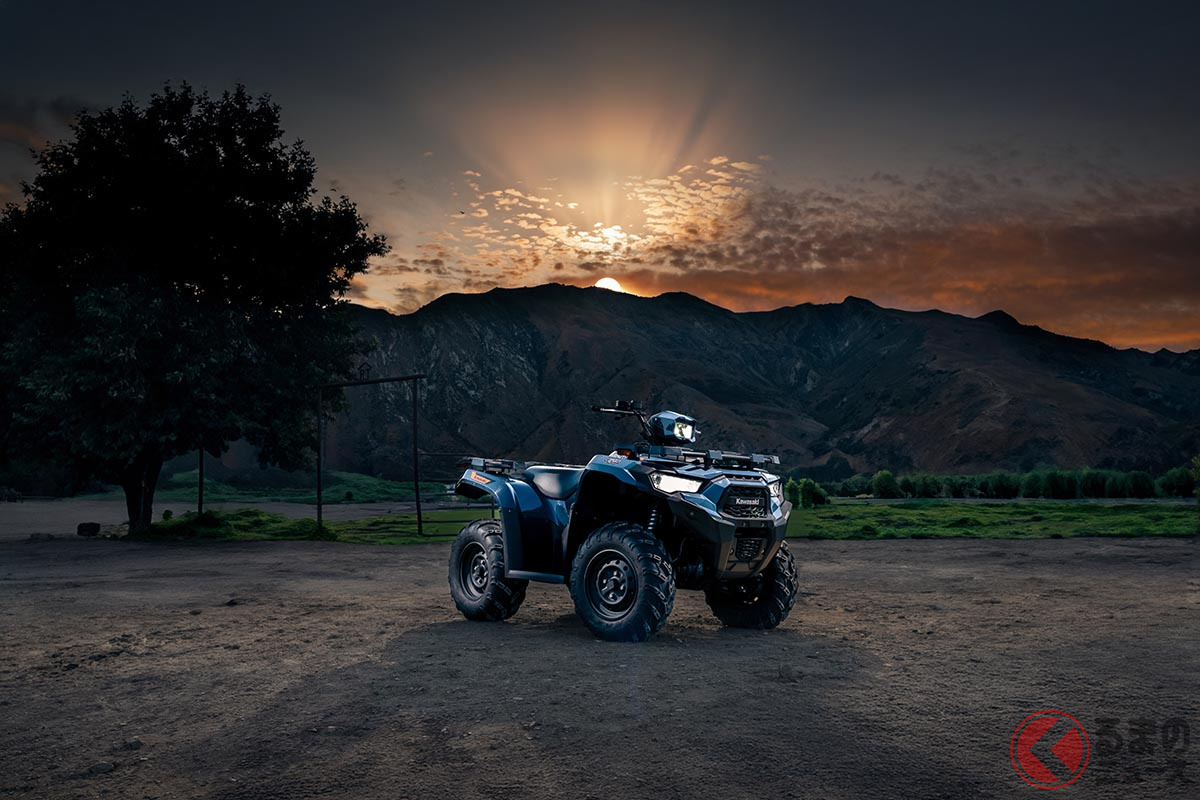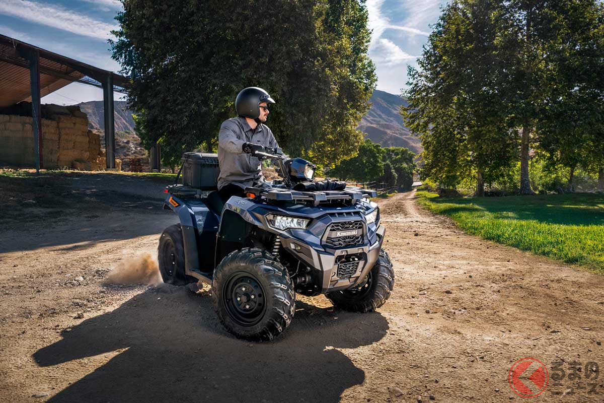 カワサキが「“新”1人乗り4WD車」発表! 電子制御パワーステアリング&「オンデマンド4WD」採用! 公道走行も可能なオフロード車「Brute Force 450 ESP T-cat」欧州で発表