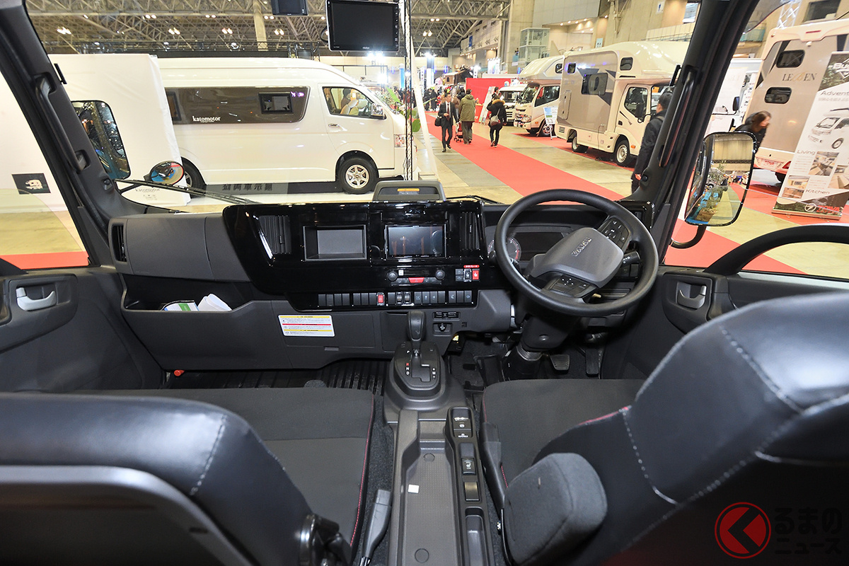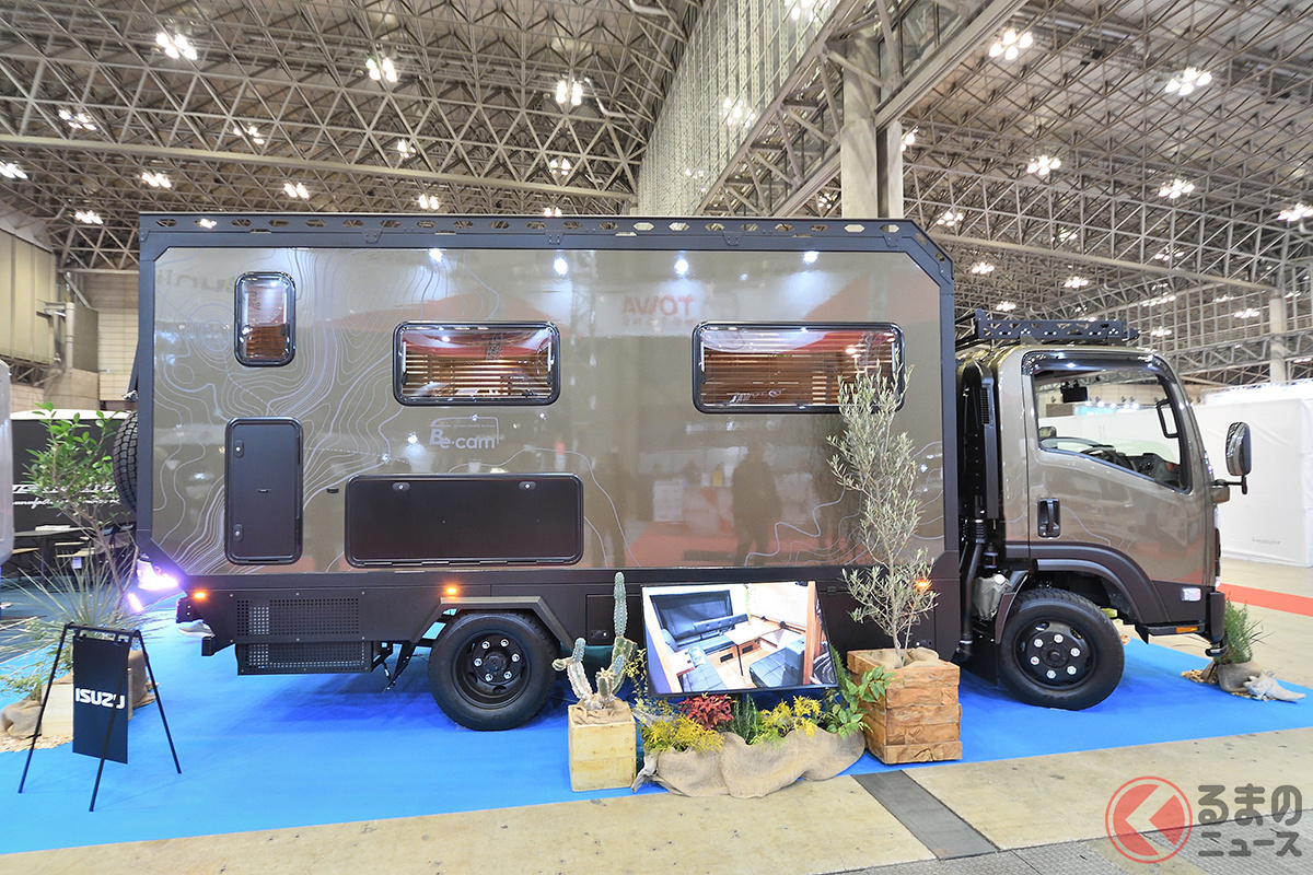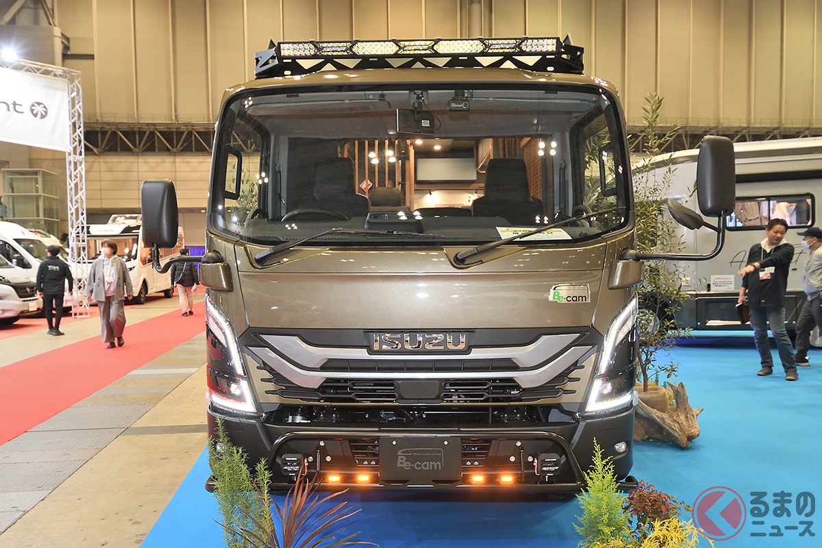 いすゞの新型「5人乗り“高級”トラック」!? 全長6.7m級「ワイド&ロング」ボディが「4人」寝られる「めちゃひろびろ空間」に! オシャな内装もカッコいいNTBの“2300万円超え”「Be-cam」フラッグシップ車中泊モデル「新型ジオローム」がスゴい!