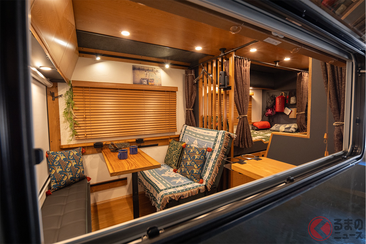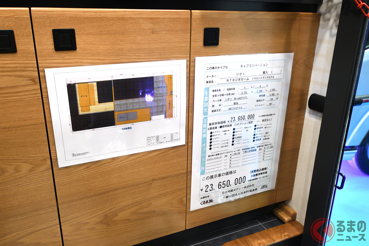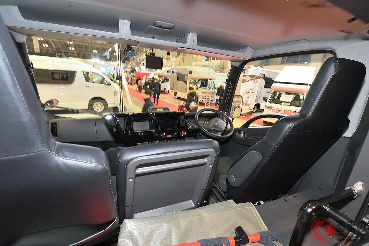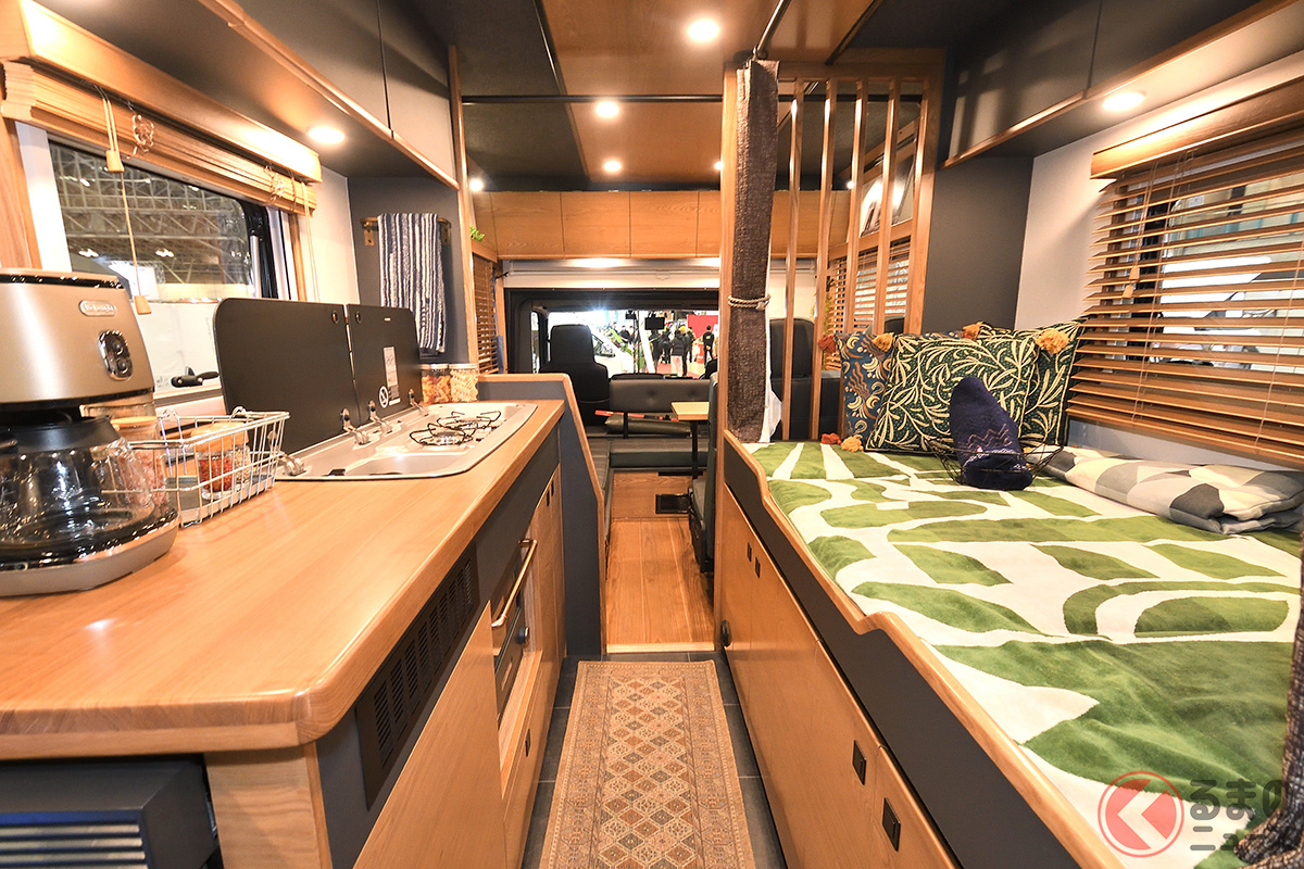 いすゞの新型「5人乗り“高級”トラック」!? 全長6.7m級「ワイド&ロング」ボディが「4人」寝られる「めちゃひろびろ空間」に! オシャな内装もカッコいいNTBの“2300万円超え”「Be-cam」フラッグシップ車中泊モデル「新型ジオローム」がスゴい!