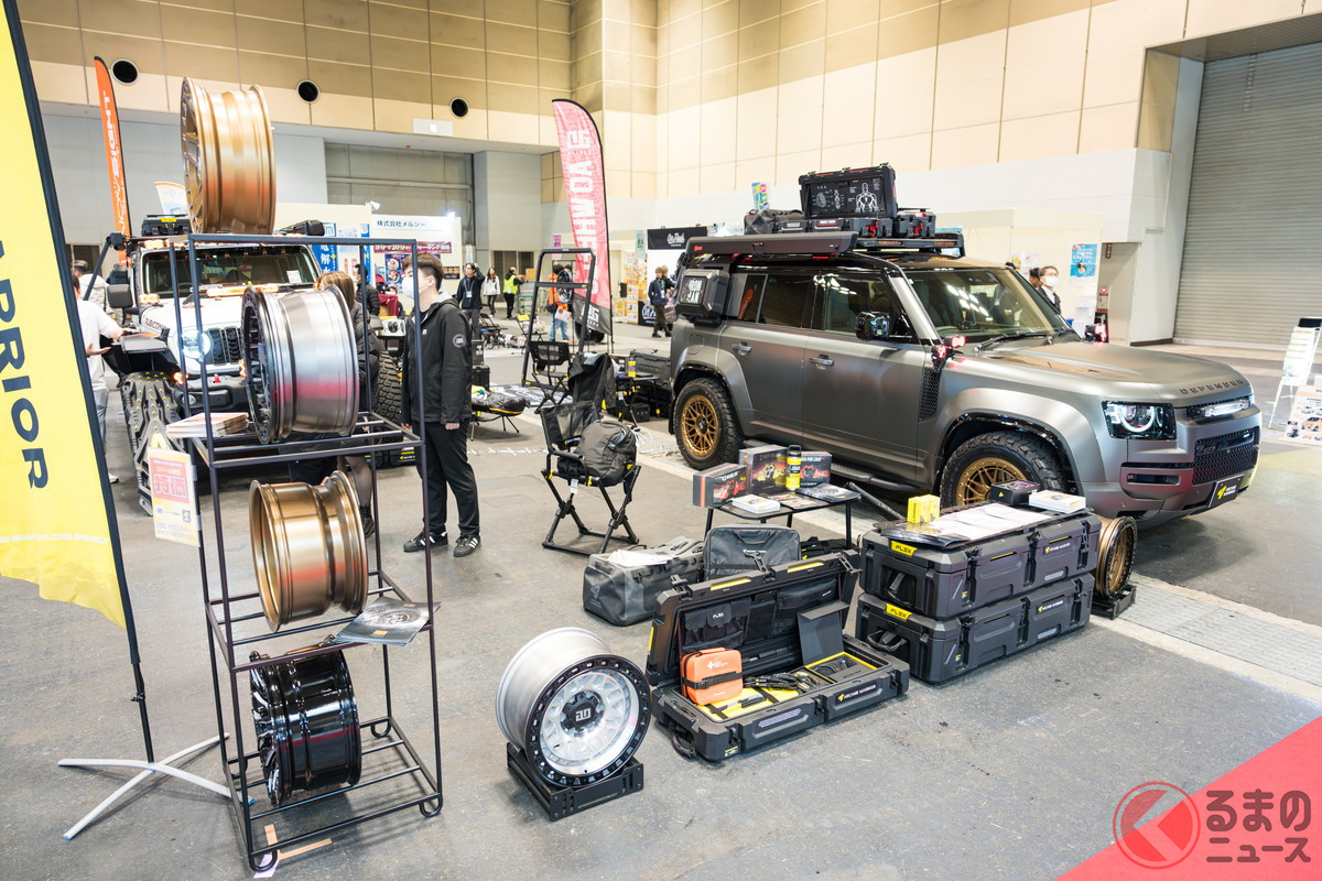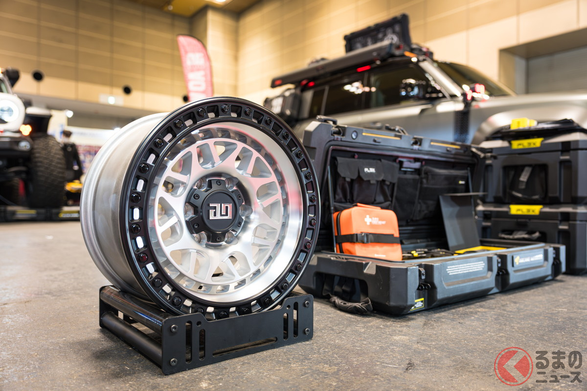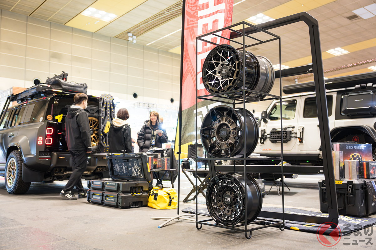 大阪オートメッセ2026に、主にSUVやオフロード車向けのカスタムホイールを手掛けるメーカー「AO WHEELS」が出展しています。ブースでは、オフロード車にマッチするアウトドアギアなどもあわせて展示されています。