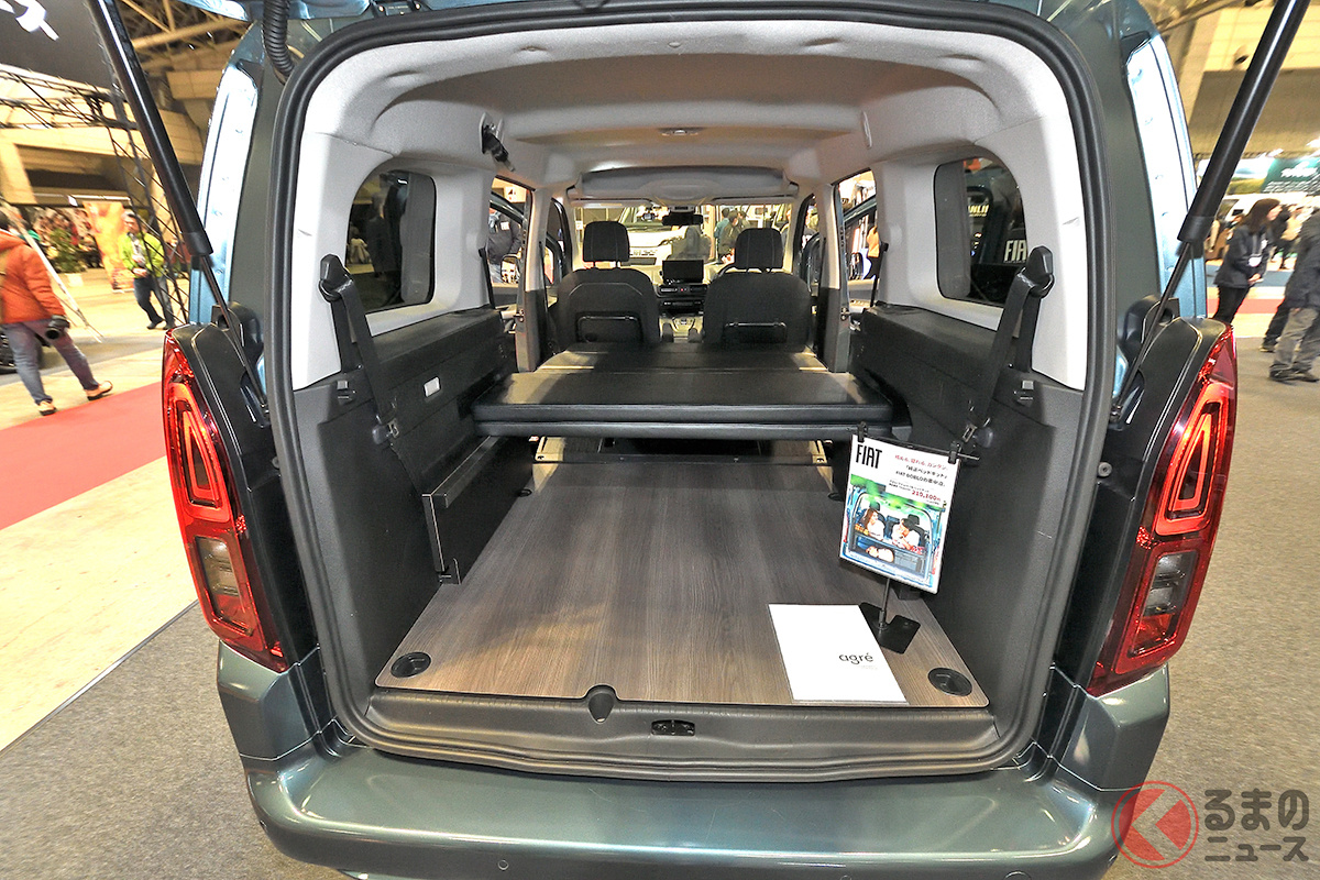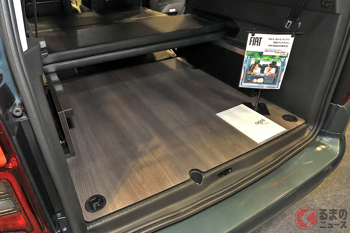 全長4.7m級「“大人2人寝られる”スライドドアミニバン」がスゴい! 特別な「スゴい荷室」も採用!? プロの「道具感」もカッコいい“車中泊仕様”のフィアット「ドブロ“マキシ”」どう違う?