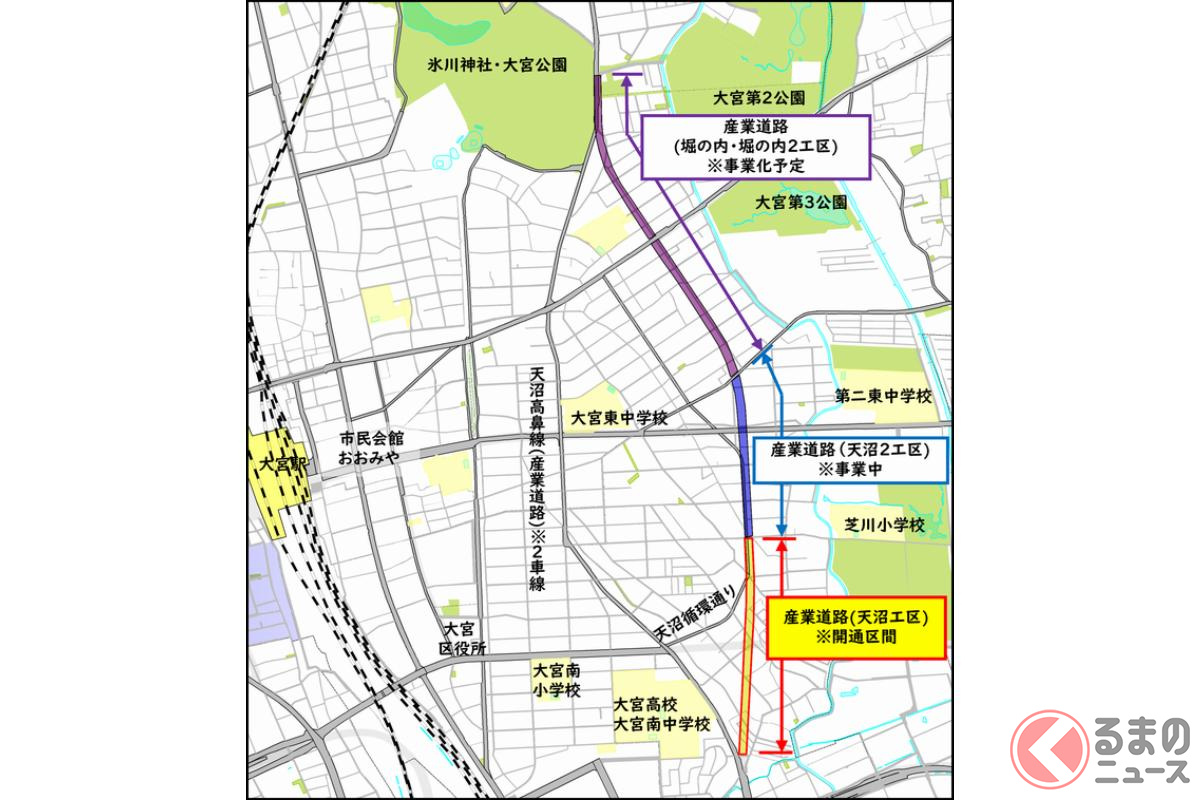 19年越しの開通! 駅周辺の「慢性渋滞」緩和へ 大動脈「産業道路」バイパス2月18日に開通へ 埼玉・大宮
