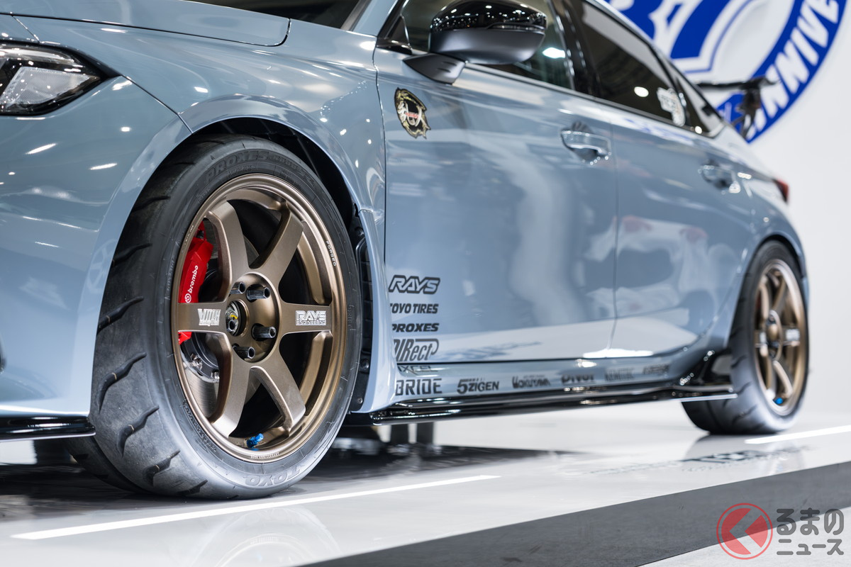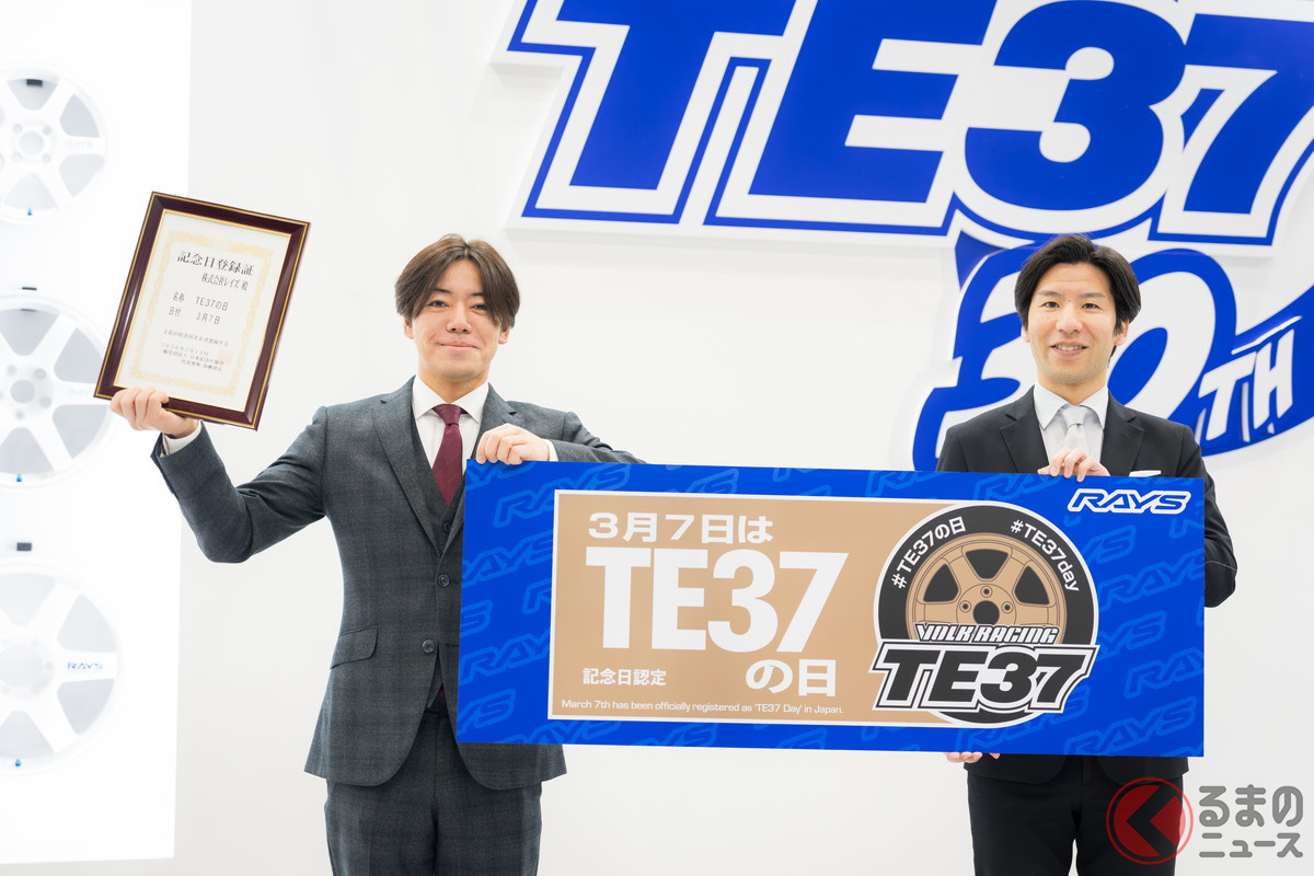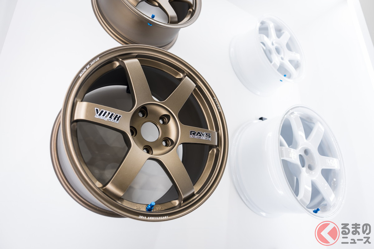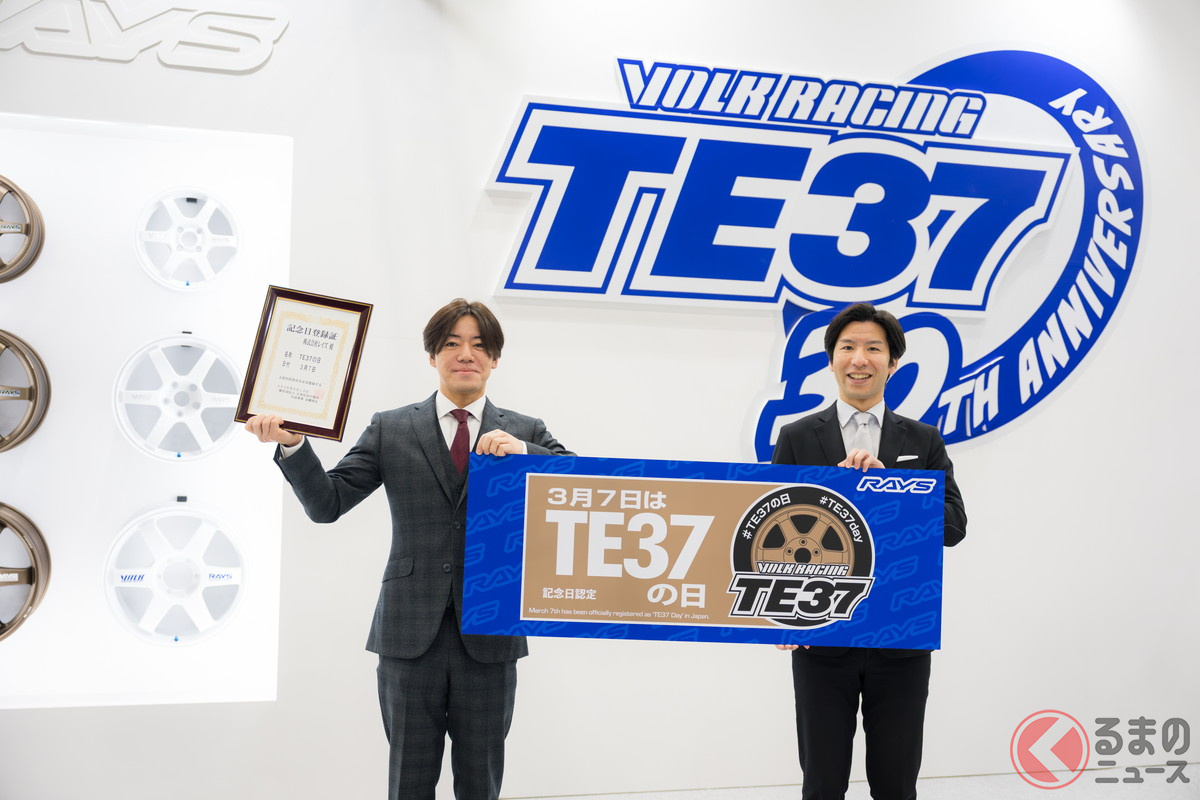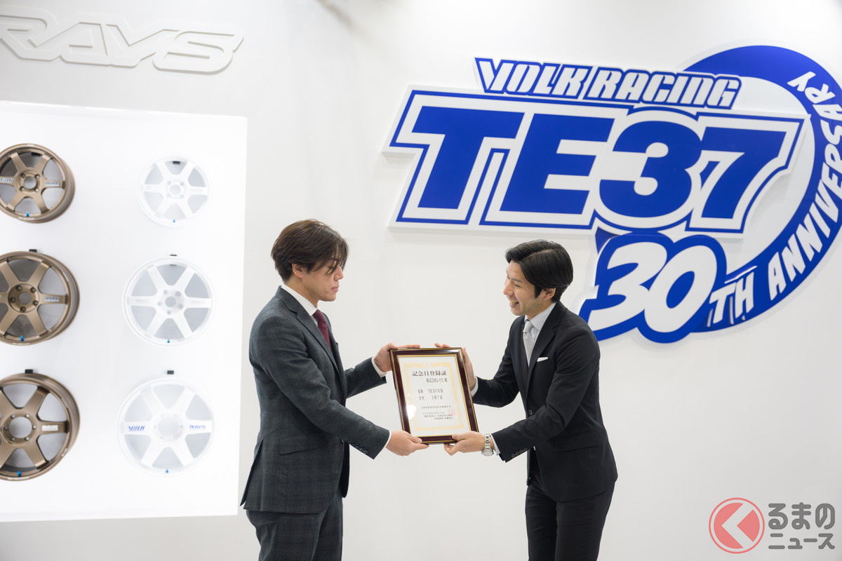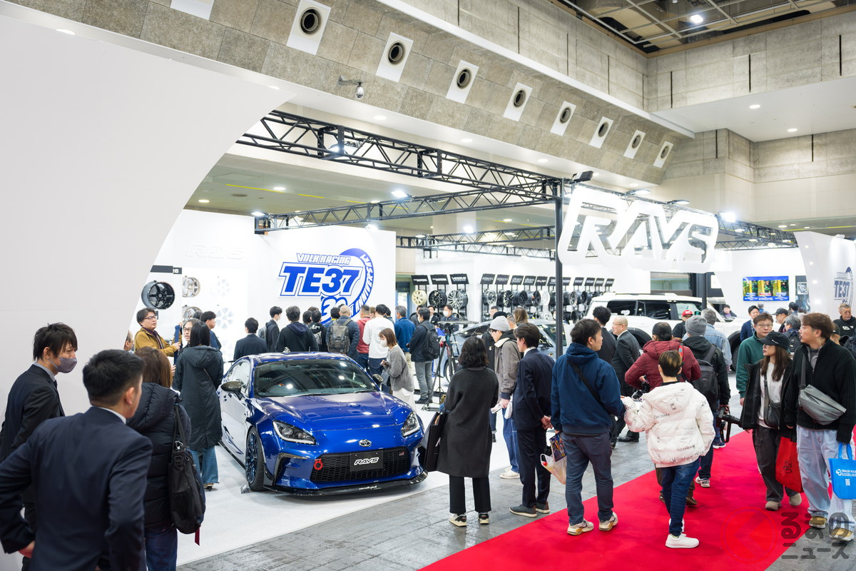 インテックス大阪で開催されたカスタマイズカーのイベント「大阪オートメッセ2026」に、ホイールメーカーのレイズが出展しました。歴代のTE37シリーズが多数展示されるなか、このTE37にちなんだサプライズ発表がありました。