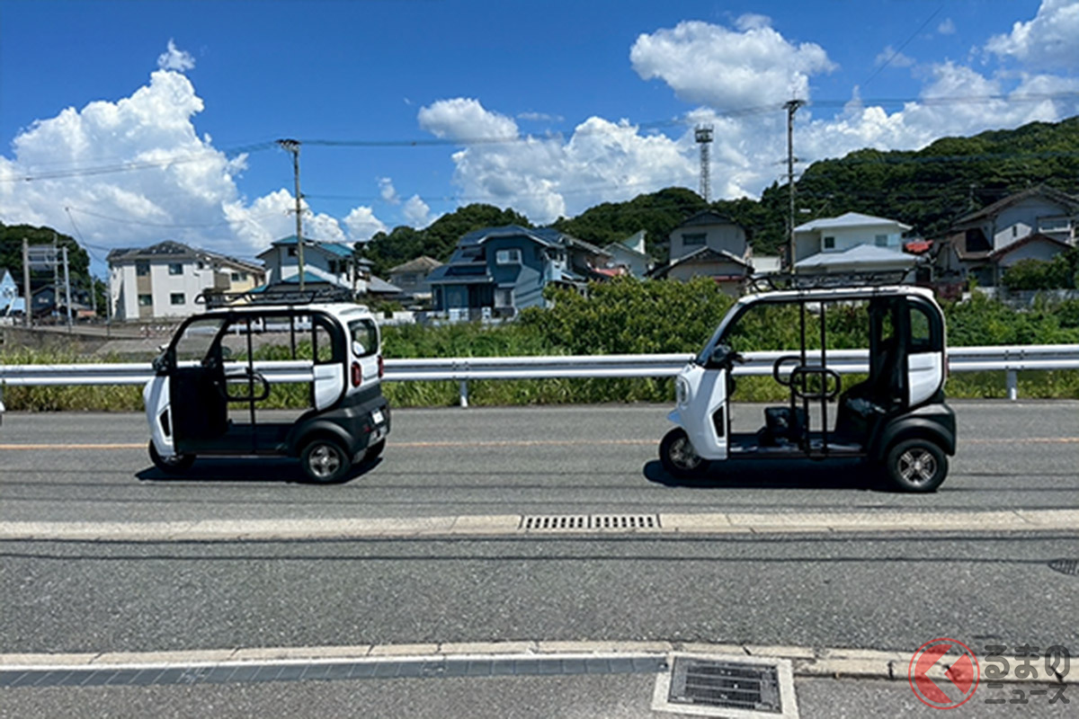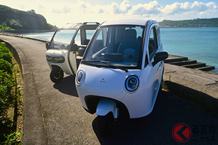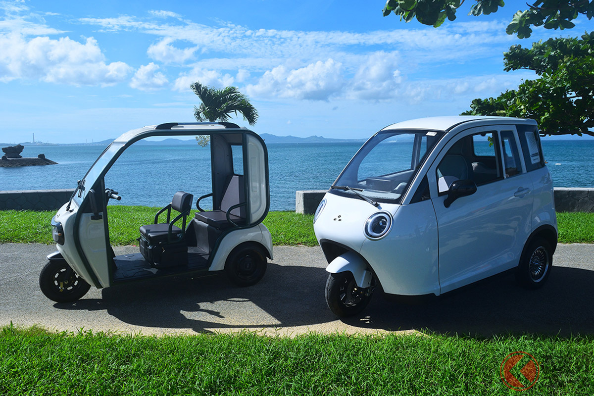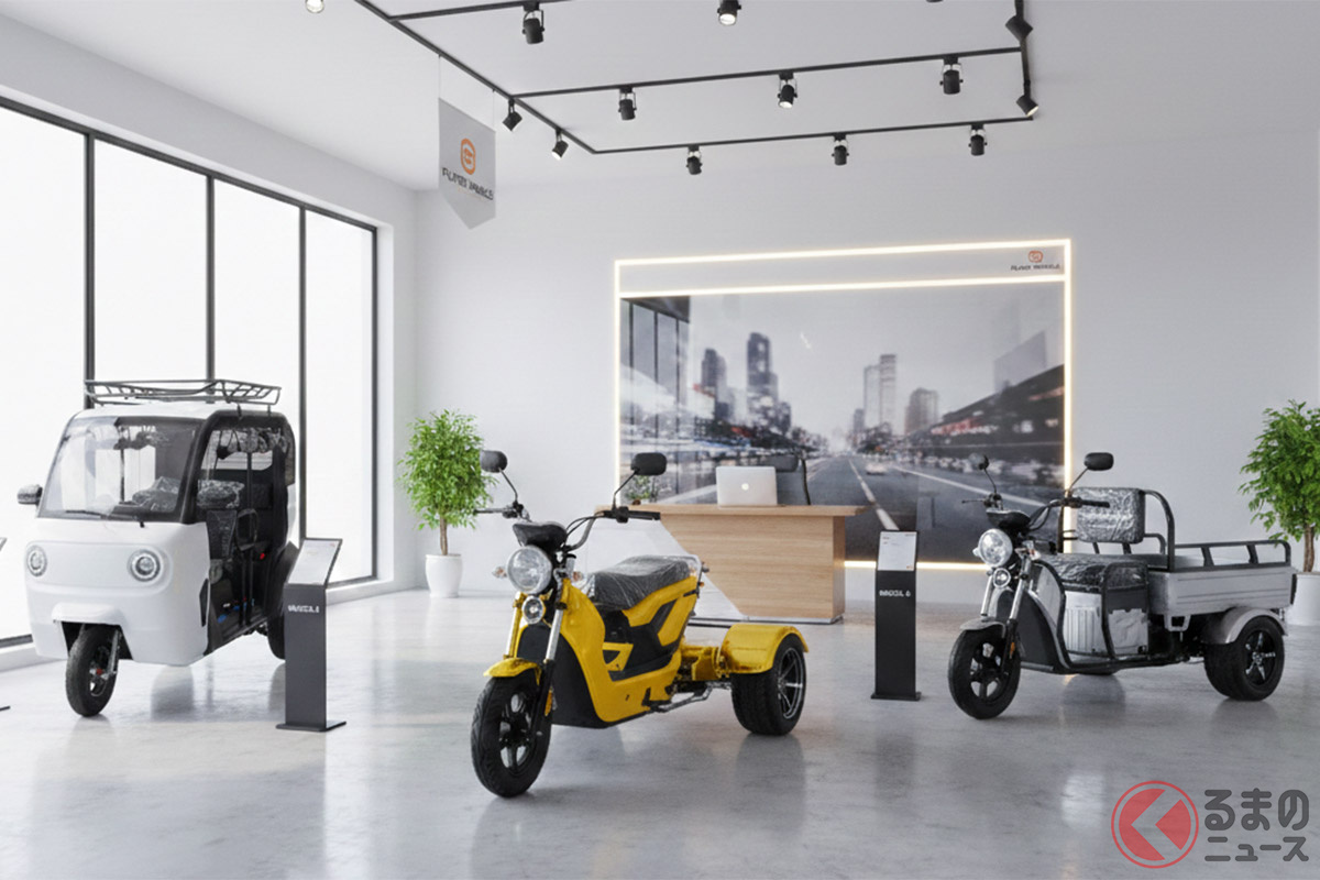 77万円から! 車検不要の新型「“3人乗り”トライク」発売! 丸目ライト×屋根とキャリアも備えて「使い勝手サイコー!」 “ミニ軽トラ”みたいな「トラクター仕様」や2人用「バイク仕様」もあるCREVAS GROUP「スリー」とは!