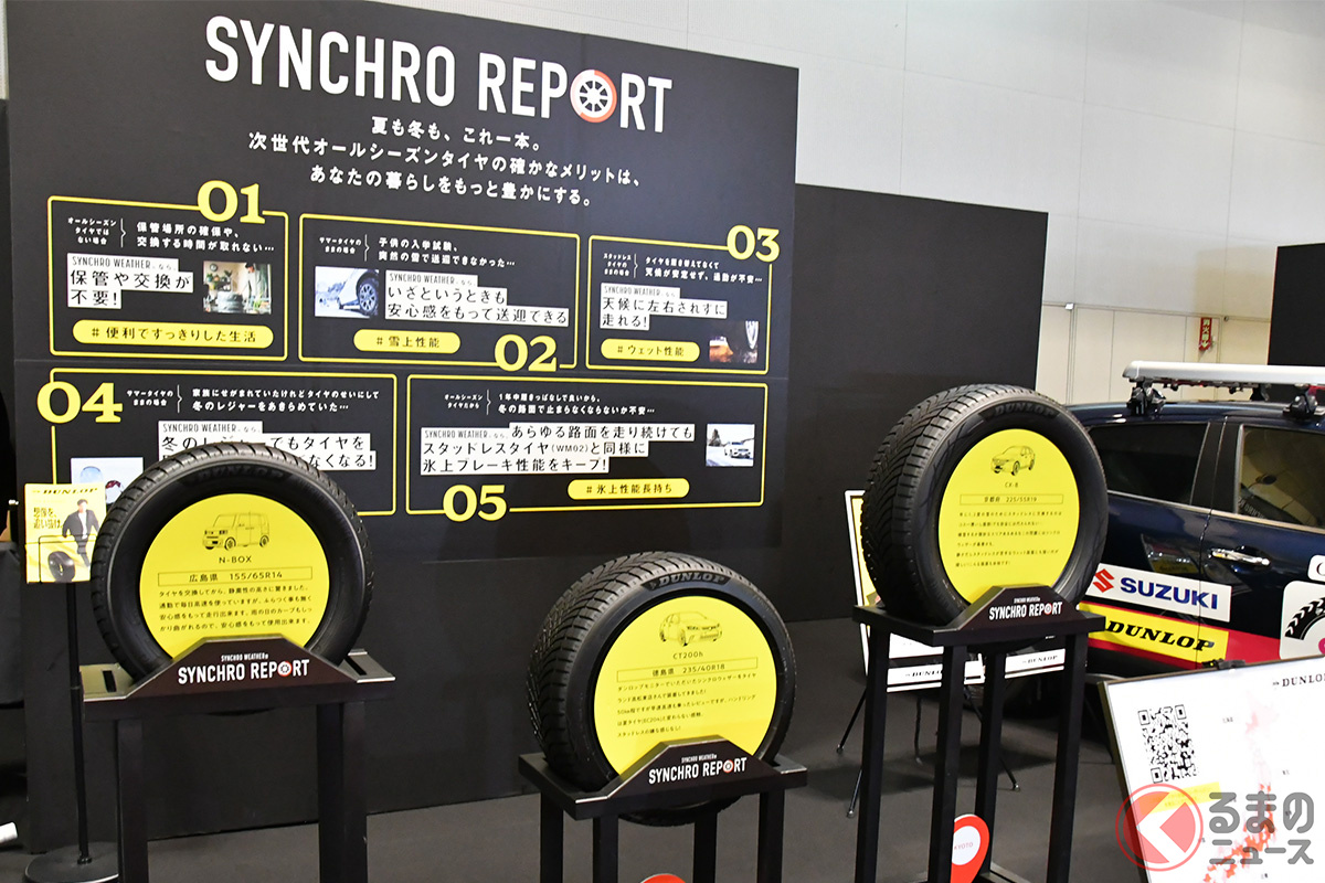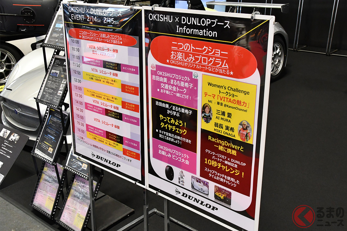 ダンロップは、2026年2月13日~15日にインテックス大阪で開催された「大阪オートメッセ2026」に出展し、次世代オールシーズンタイヤ「シンクロウェザー」や「グラントレック」シリーズの展示をはじめ、ワンメイクレース車両「VITA-02」やシミュレーター、KYOJOに参戦する女性ドライバーのトークショー、「OKISHUプロジェクト」のイベントなど多くのコンテンツが実施されました。