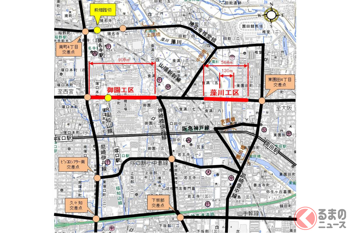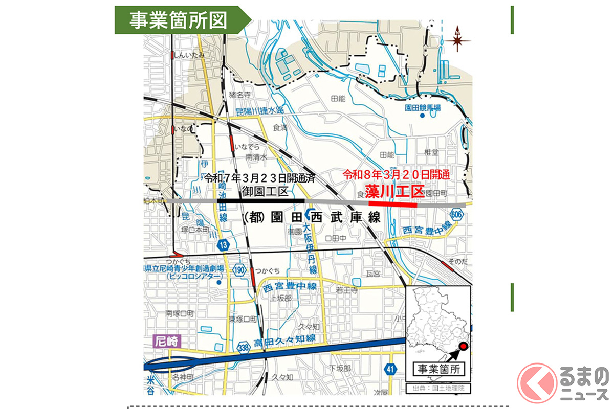 兵庫~大阪結ぶ「東西道路」ついに全通!移動時間が「6割減」に!? 園田西武庫線「藻川工区」3月20日開通