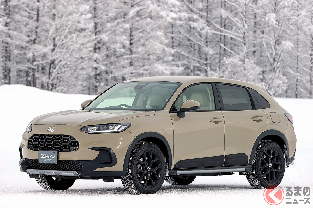 ホンダが「“新”5人乗りSUV」初公開! タフ感アップした「新デザイン」の特別モデル「クロスツーリング」も新設定! 装備も充実の一部改良モデル「“新”ZR-V」3月下旬に登場へ