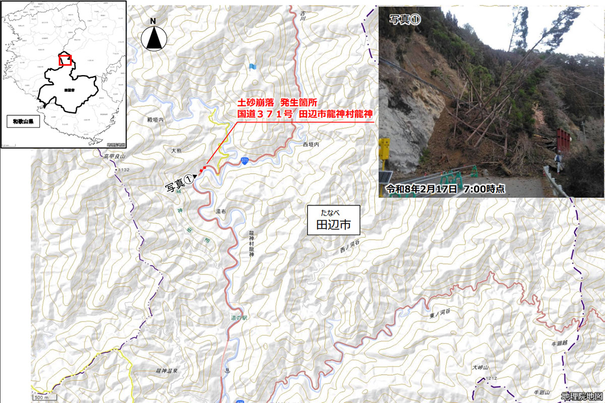 和歌山県田辺市内の国道371号が通行止めになっています。