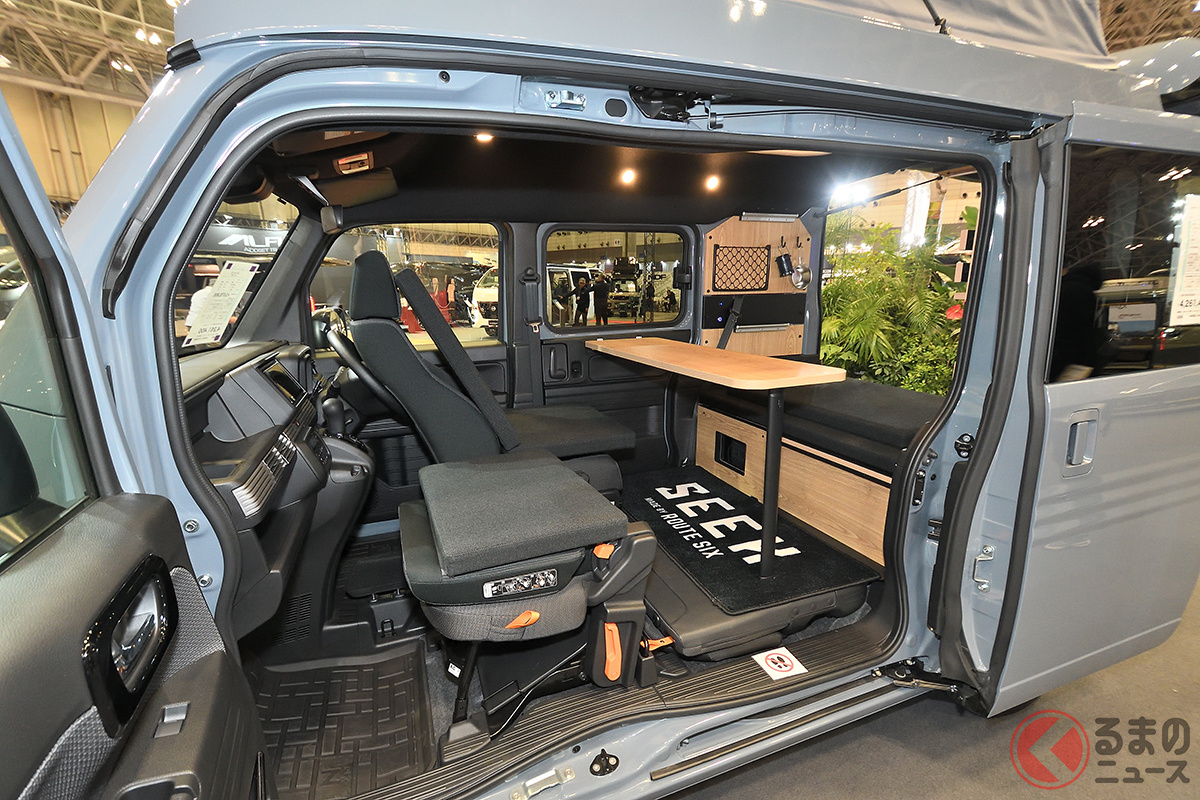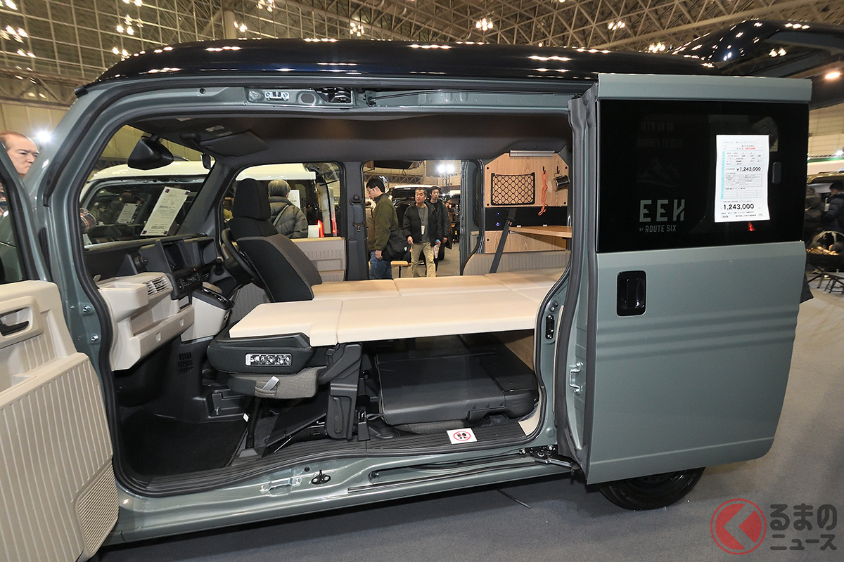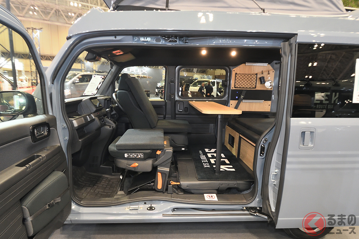 ホンダ「大人が“4人寝られる”」軽バンがスゴい! 全長3.4m級「ミニサイズ」に「リビング」も完備!? 電気が自由に取り出せる仕様もあるルートシックスの「N-VAN」軽キャンパー「シーク」シリーズ どんなクルマ?