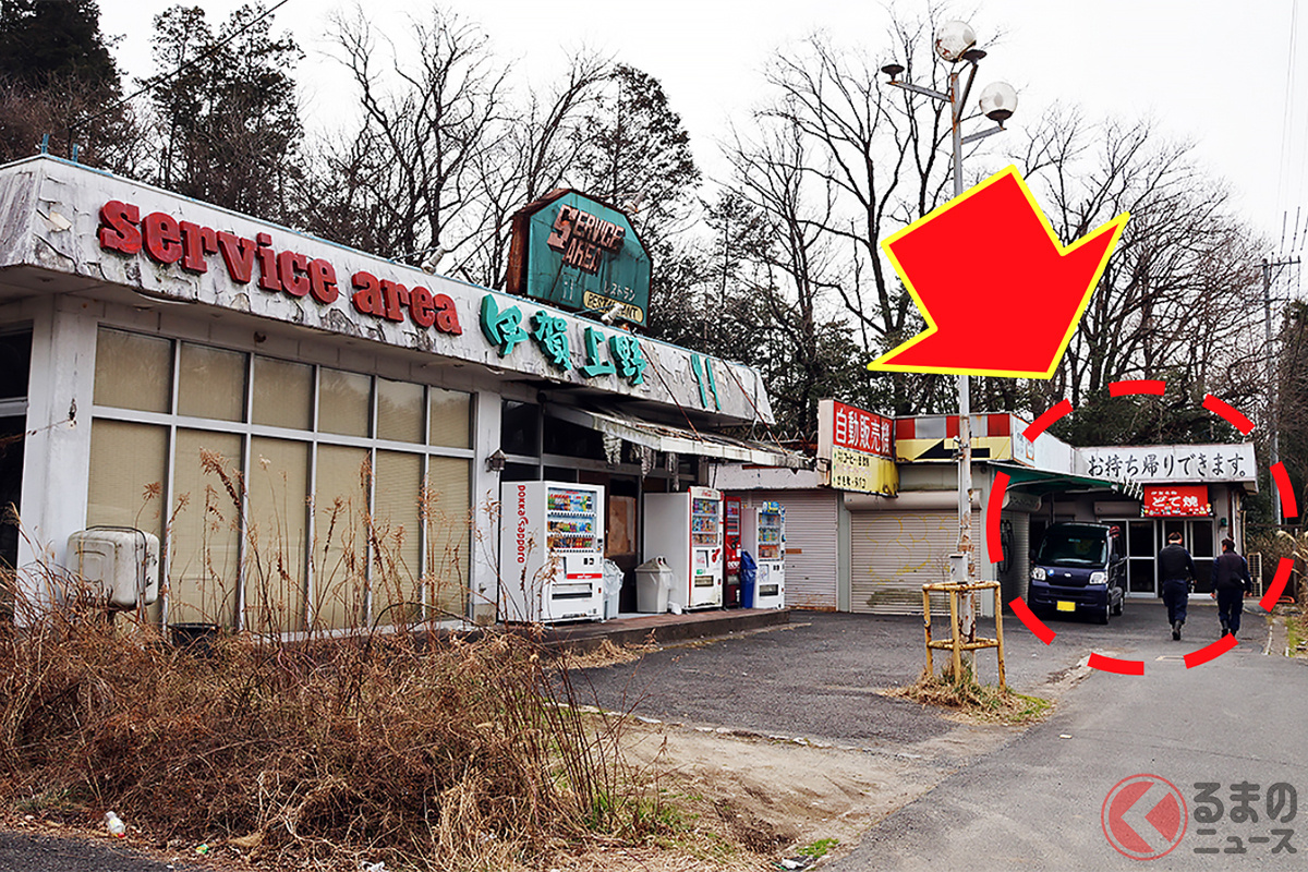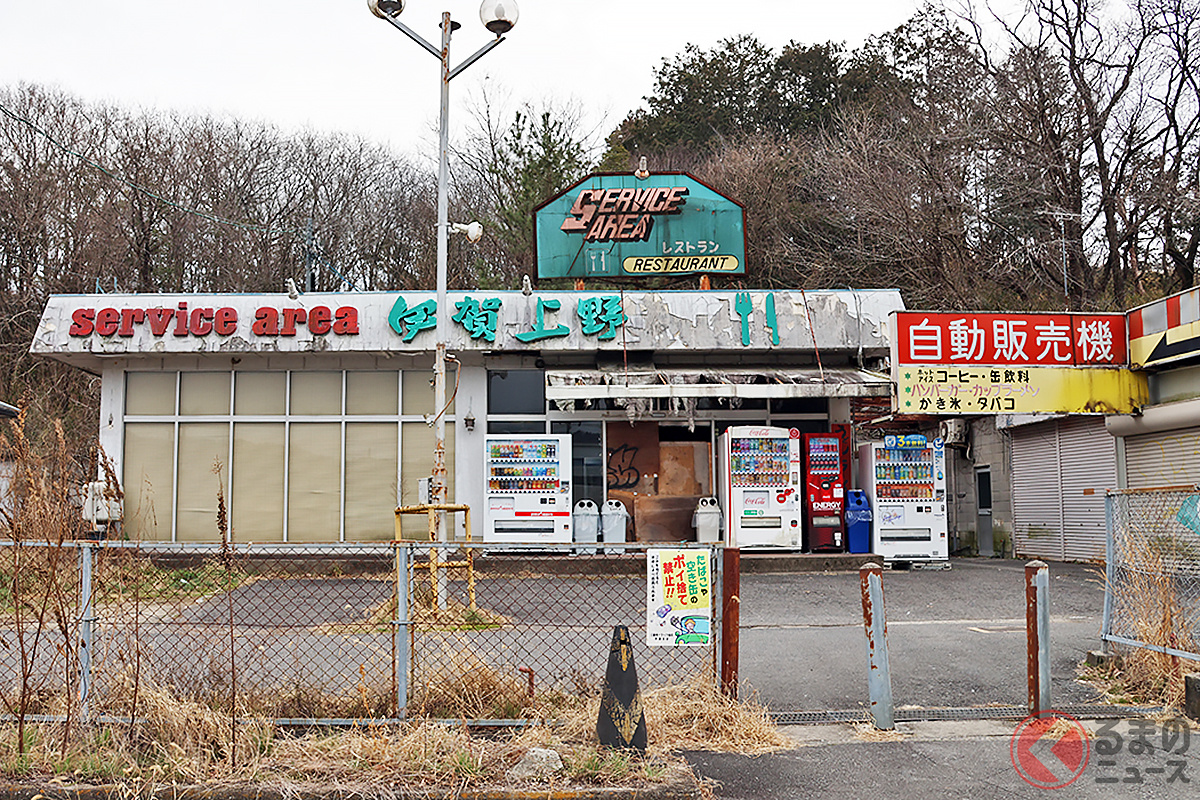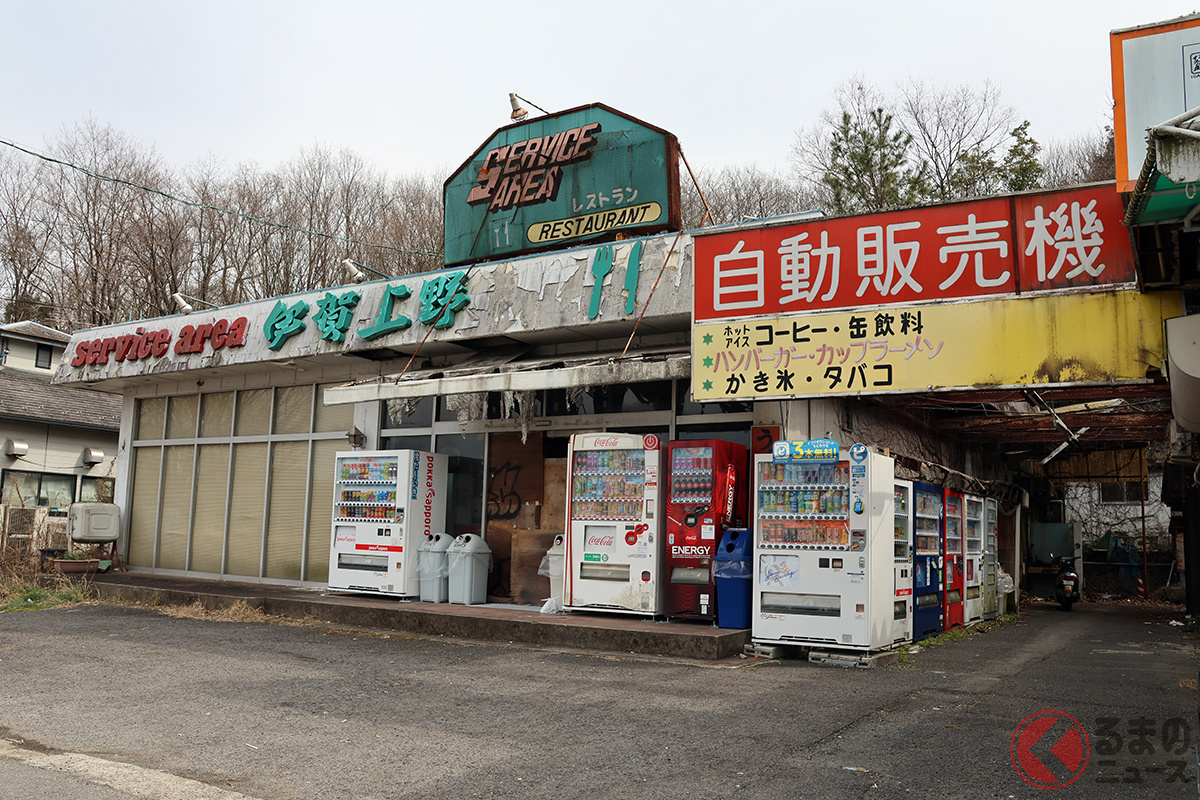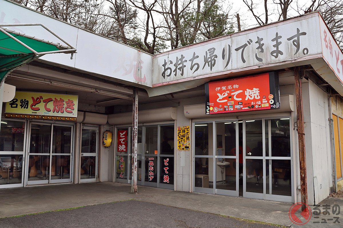 “廃墟”感がスゴい!「ホントに営業してる?」名阪国道“謎のサービスエリア”に潜入! 片隅で営む名物「どて焼き」がめちゃ美味すぎた! 昭和レトロな「ドライブイン」を巡る~「伊賀上野SA(下り)/味のお福」編(三重県)~