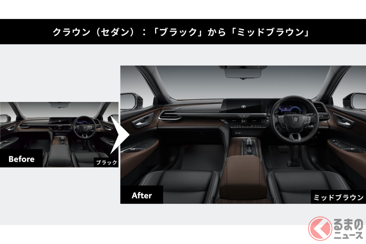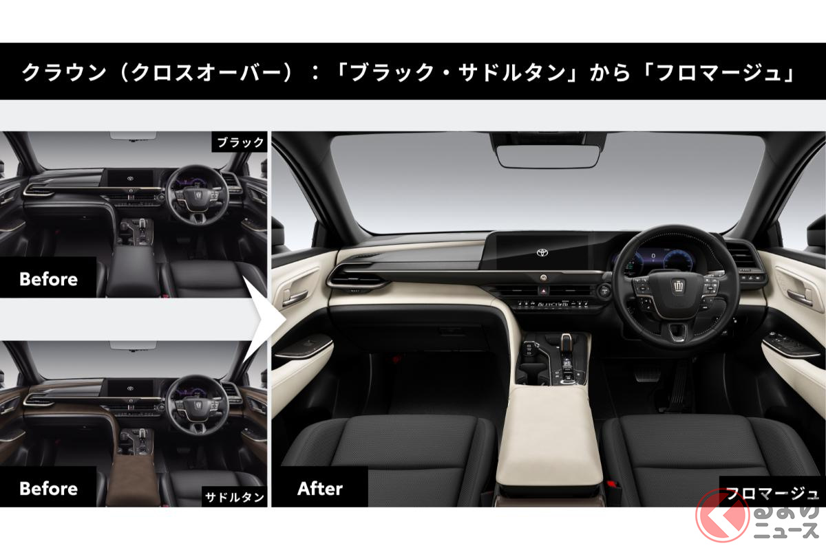 クラウン生誕71年目となる2026年に純正オプションを正規販売店で「後付け」ができるサービス「TOYOTA UPGRADE FACTORY」は、「インテリアカラーカスタマイズ」と「ホイールデザインカスタマイズ」の価格を引き下げました。