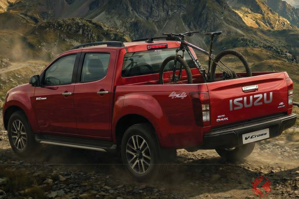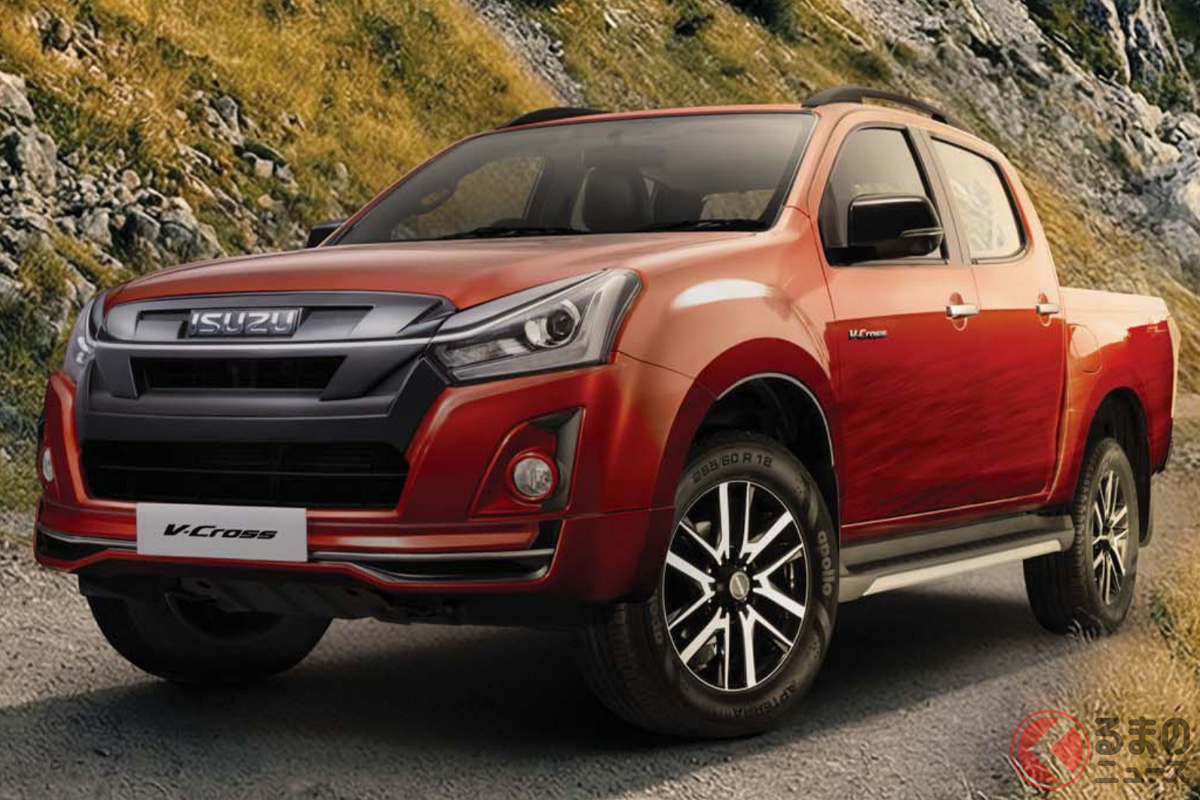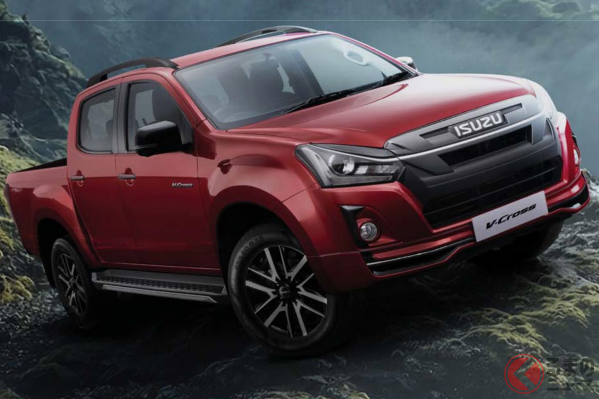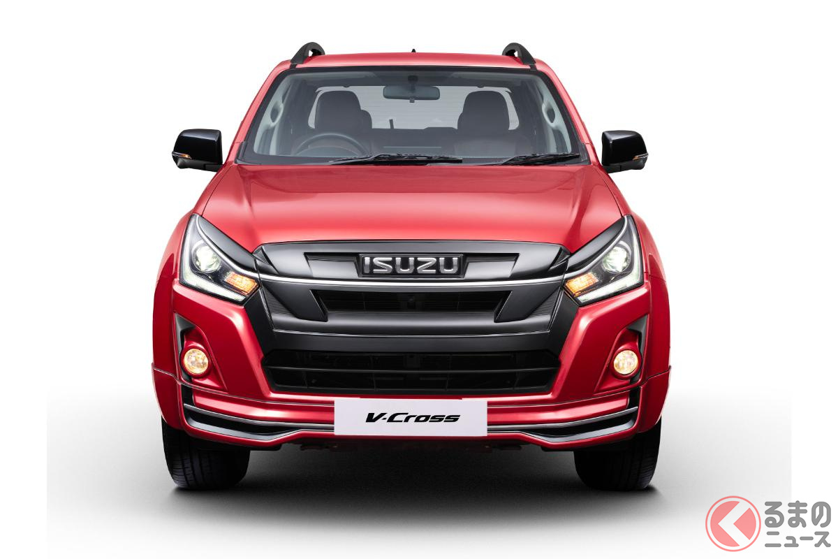 いすゞ新型「ヴィークロス」430万円から発表! 全長5.3mの「大型ボディ」に“6速MT”も選べてサイコー! ド迫力「真っ黒グリル」採用した“精悍デザイン”がカッコイイ! 悪路に強い「タフ仕様」で登場した“新型ピックアップ”印国モデルとは!