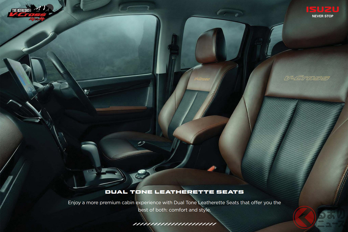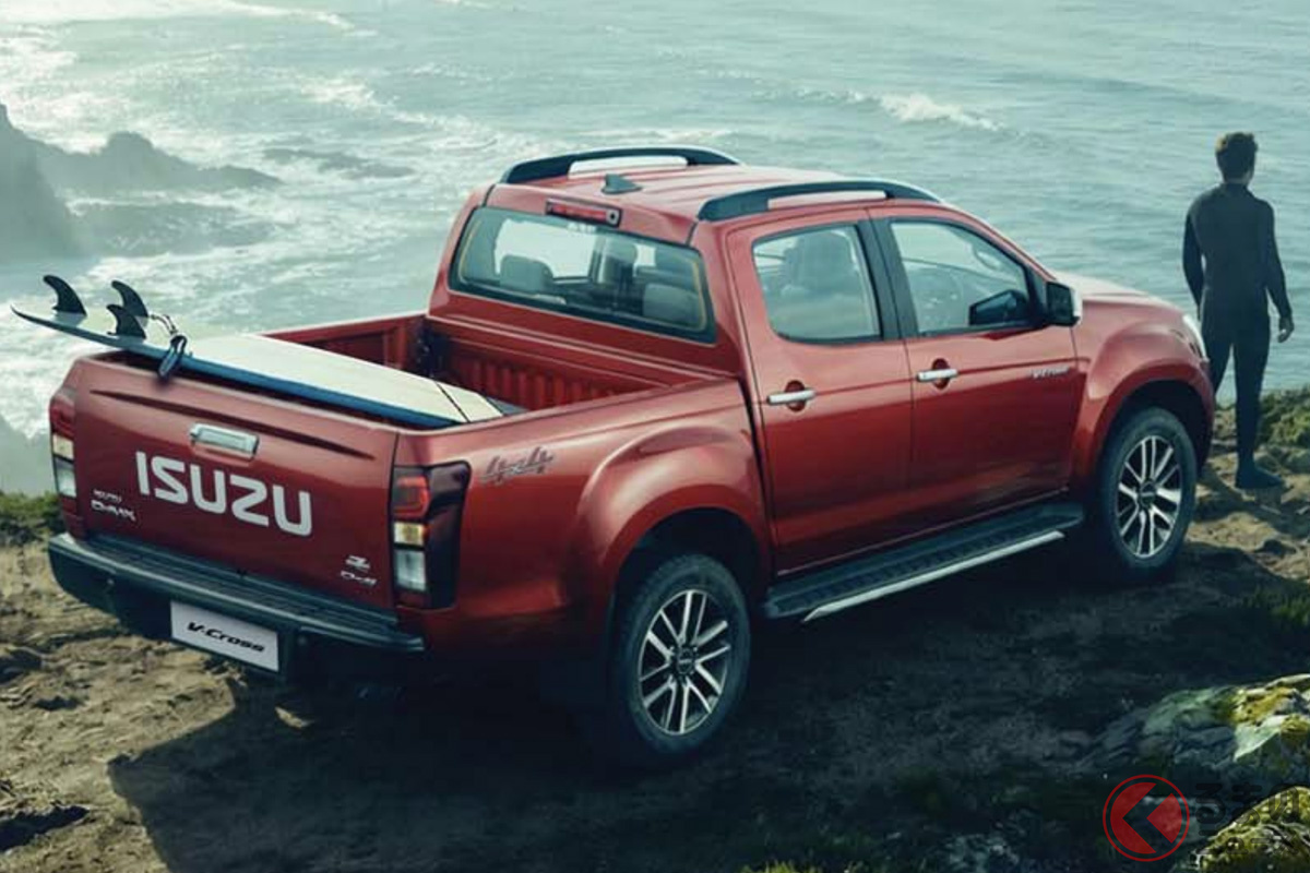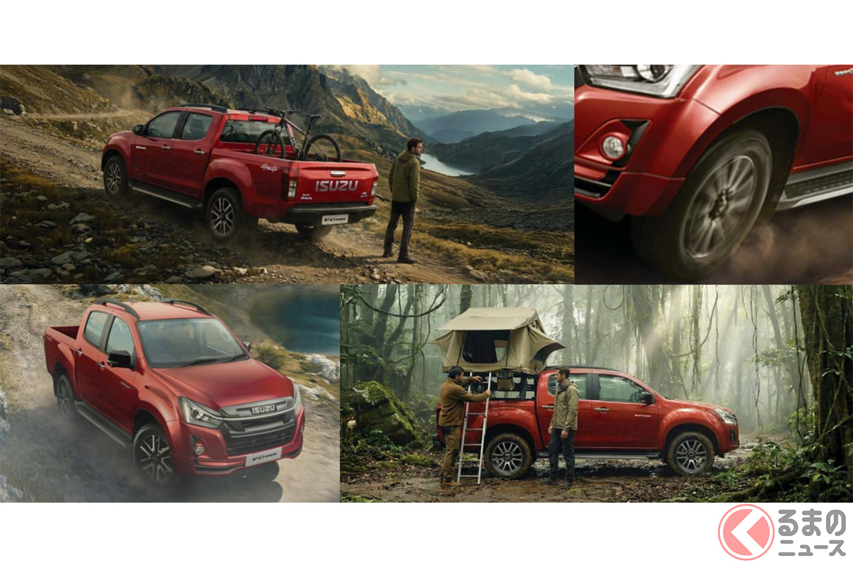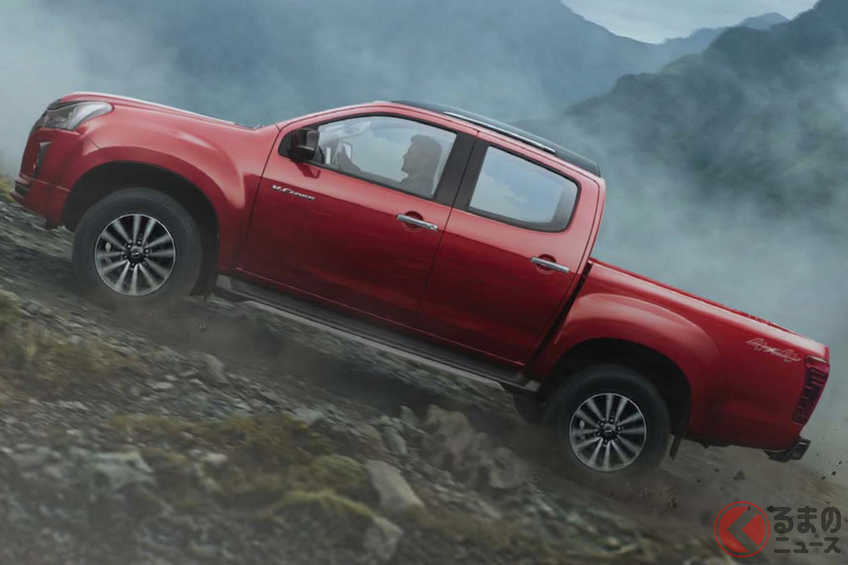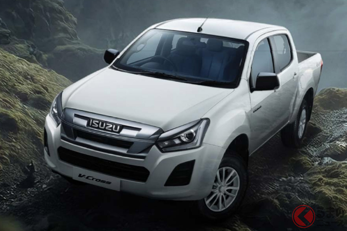 いすゞ新型「ヴィークロス」430万円から発表! 全長5.3mの「大型ボディ」に“6速MT”も選べてサイコー! ド迫力「真っ黒グリル」採用した“精悍デザイン”がカッコイイ! 悪路に強い「タフ仕様」で登場した“新型ピックアップ”印国モデルとは!