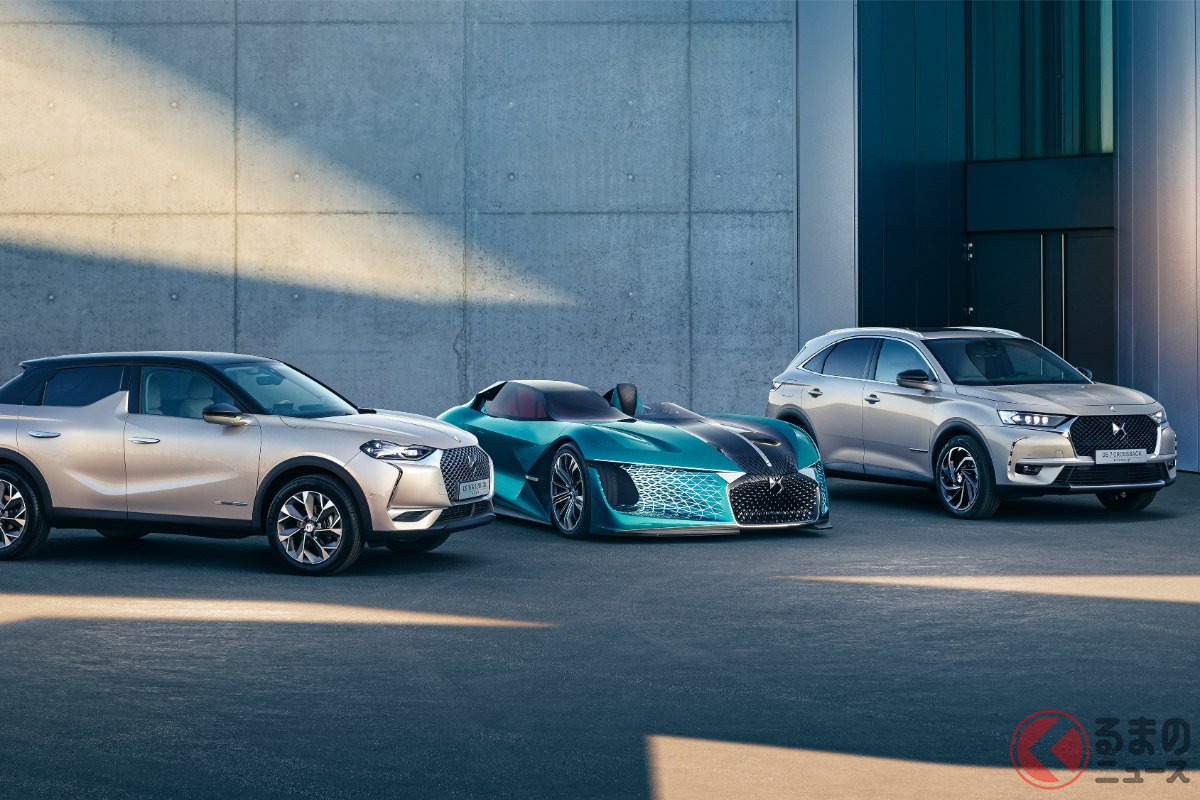 違和感ありすぎの「“3人乗り”スポーツカー」が面白い! 超斬新「非対称デザイン」&「500馬力超え」パワトレ搭載! ガバッと開く「大口ドア」採用の「DS X E-TENSE」フランス仕様とは?