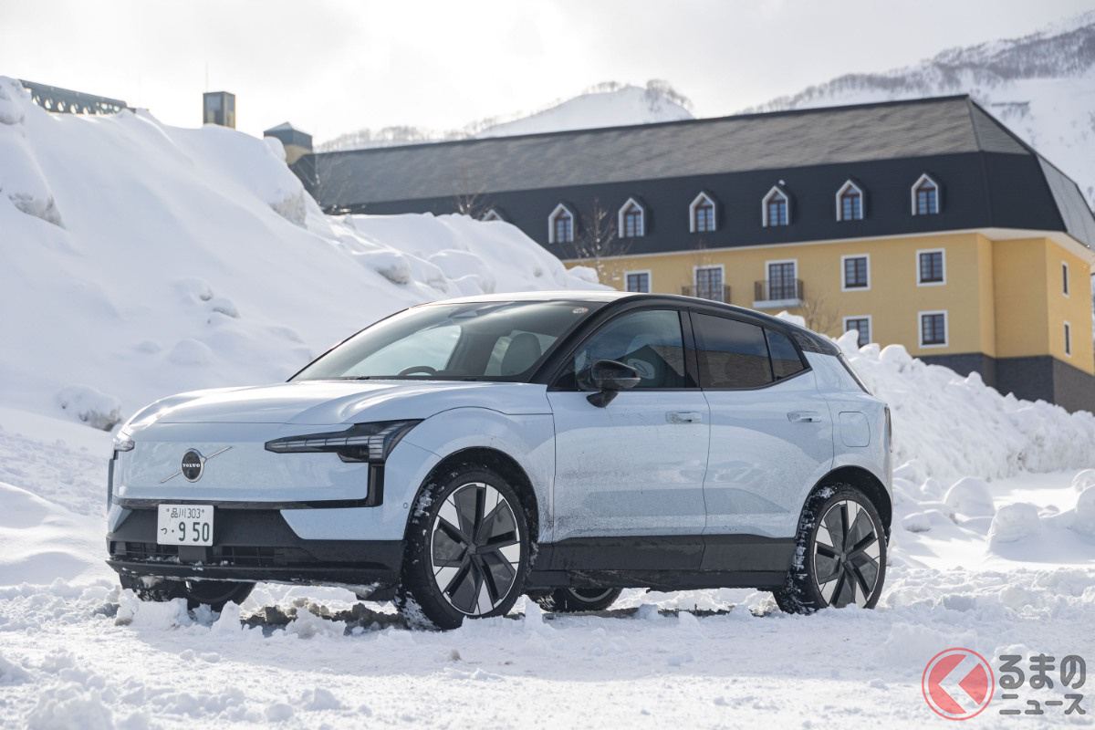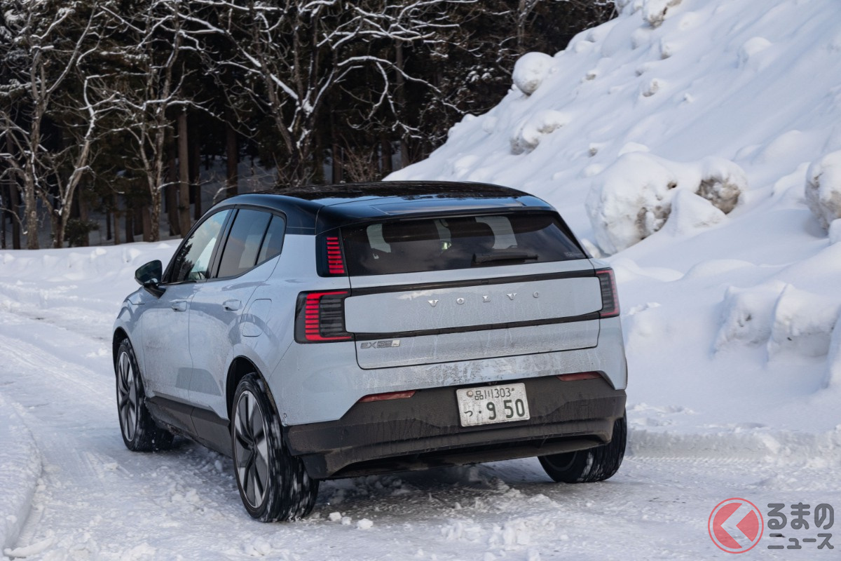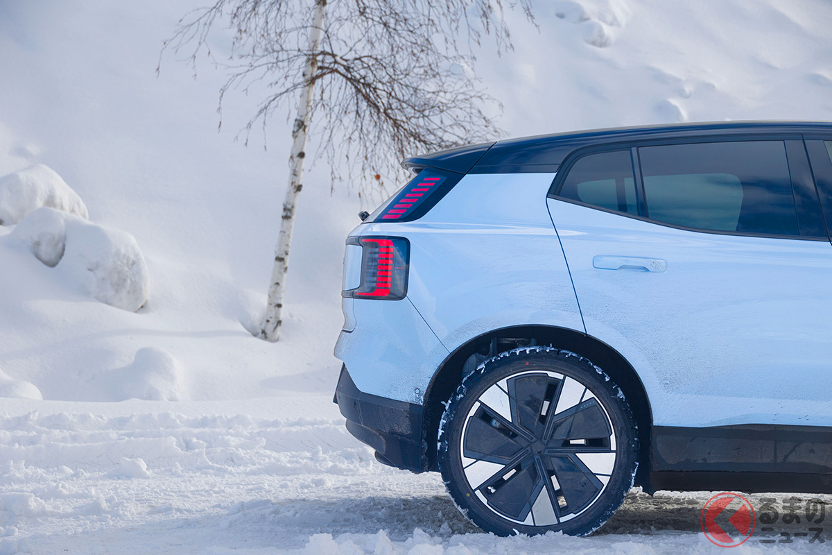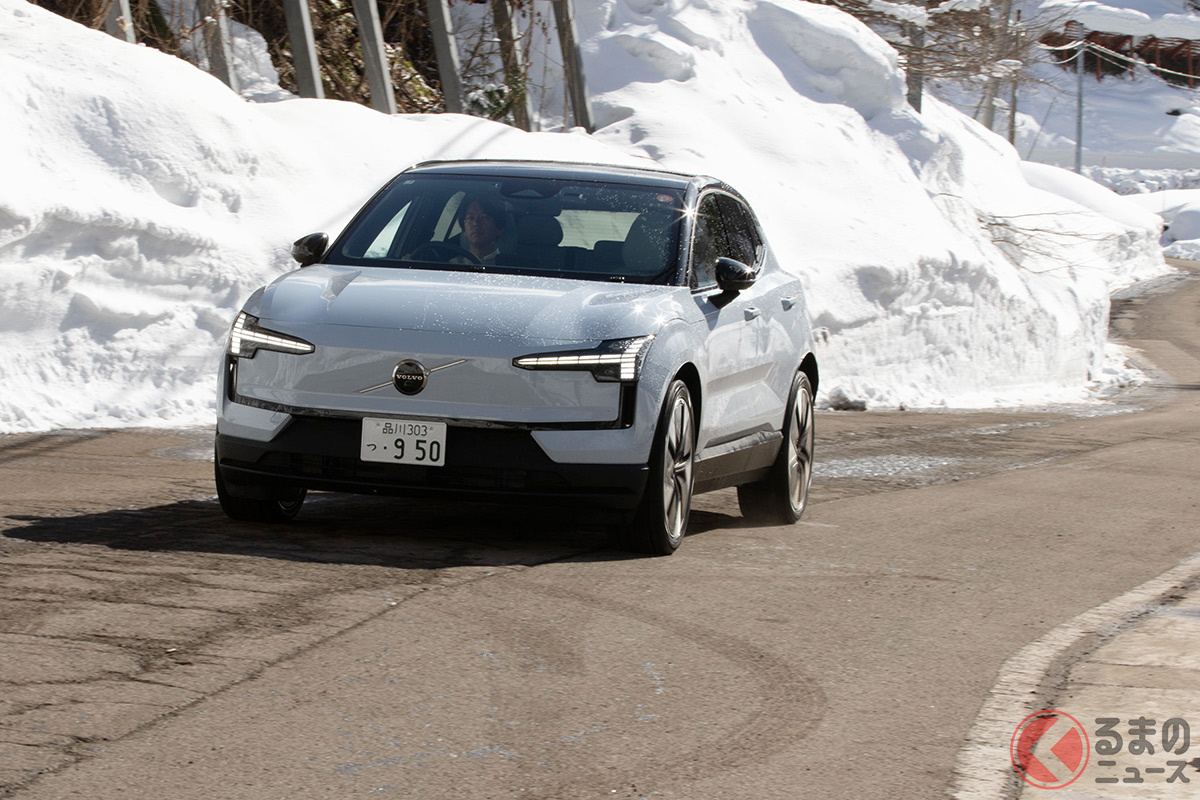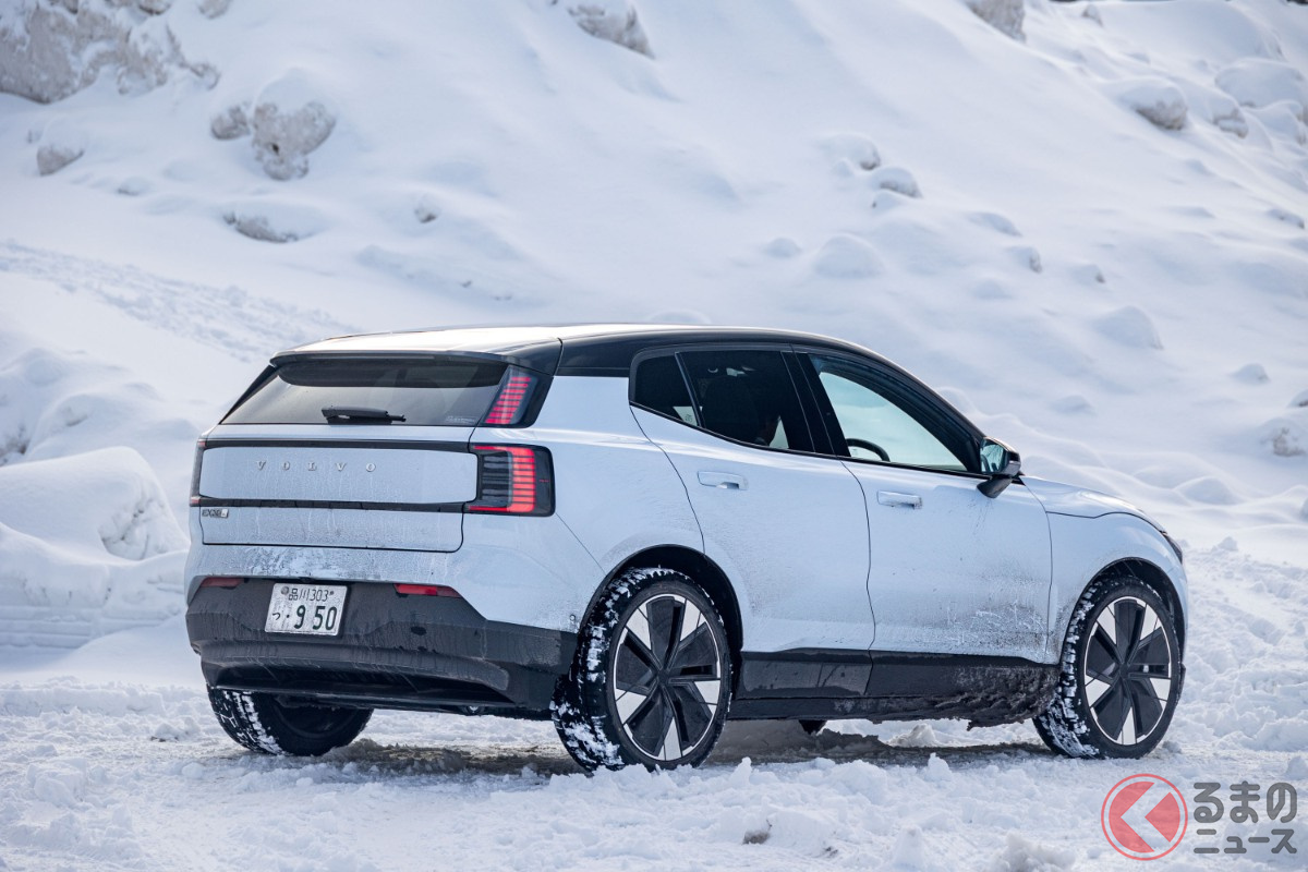 全長4.2mの「ちいさな“四駆SUV”」が魅力的! 「420馬力超え」のパワトレ搭載でポルシェ「911」より速い!? 雪上走行で見せたボルボ「EX30」の実力とは?