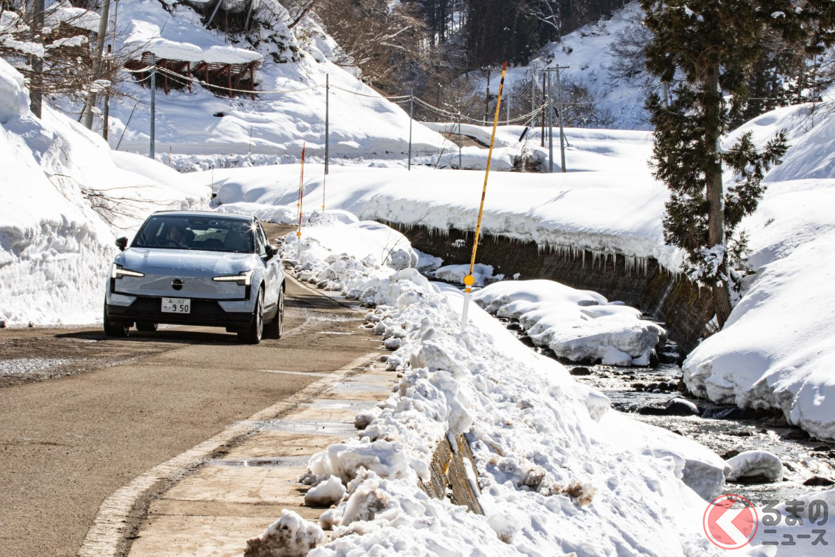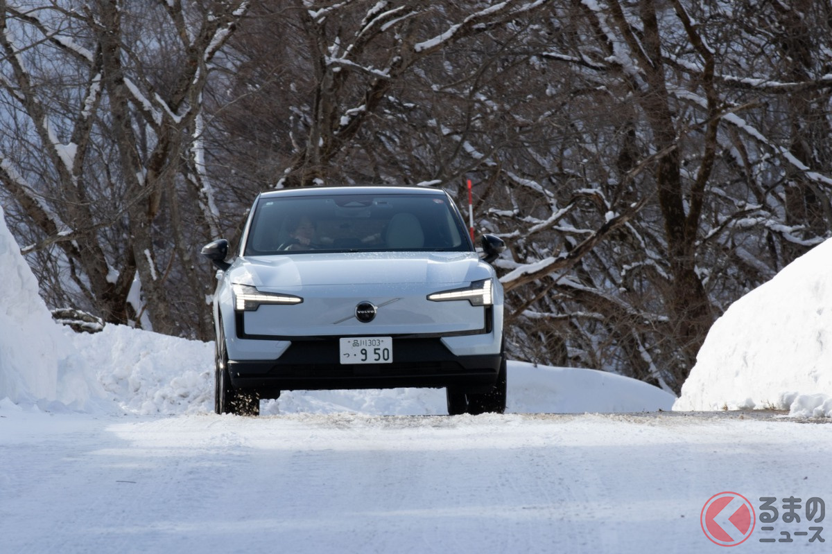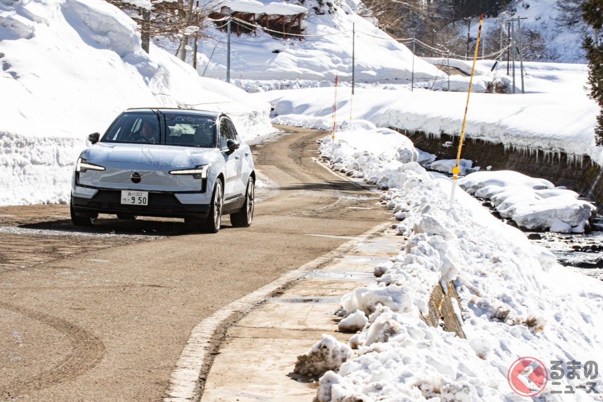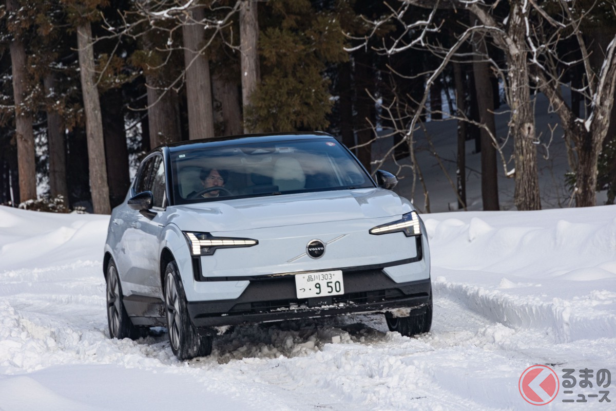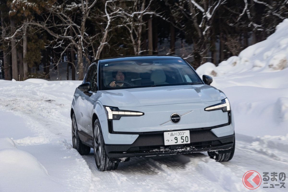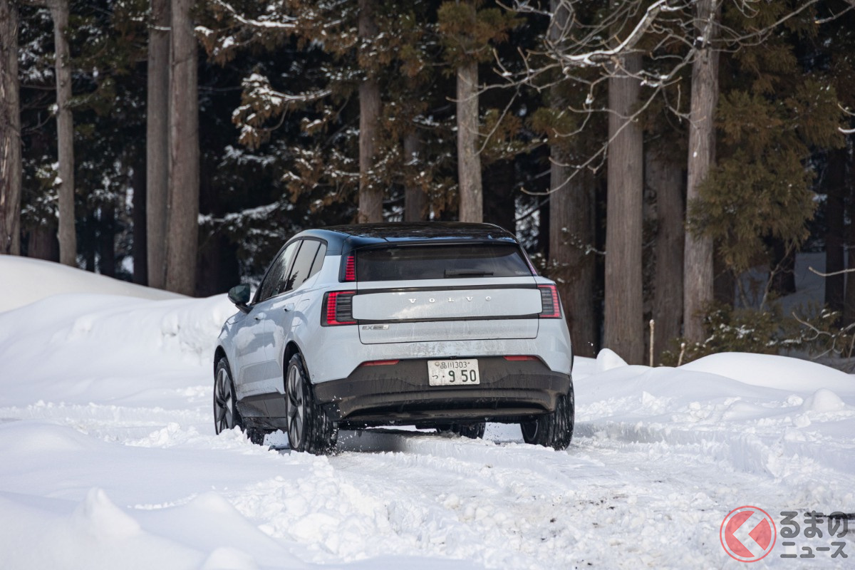 全長4.2mの「ちいさな“四駆SUV”」が魅力的! 「420馬力超え」のパワトレ搭載でポルシェ「911」より速い!? 雪上走行で見せたボルボ「EX30」の実力とは?