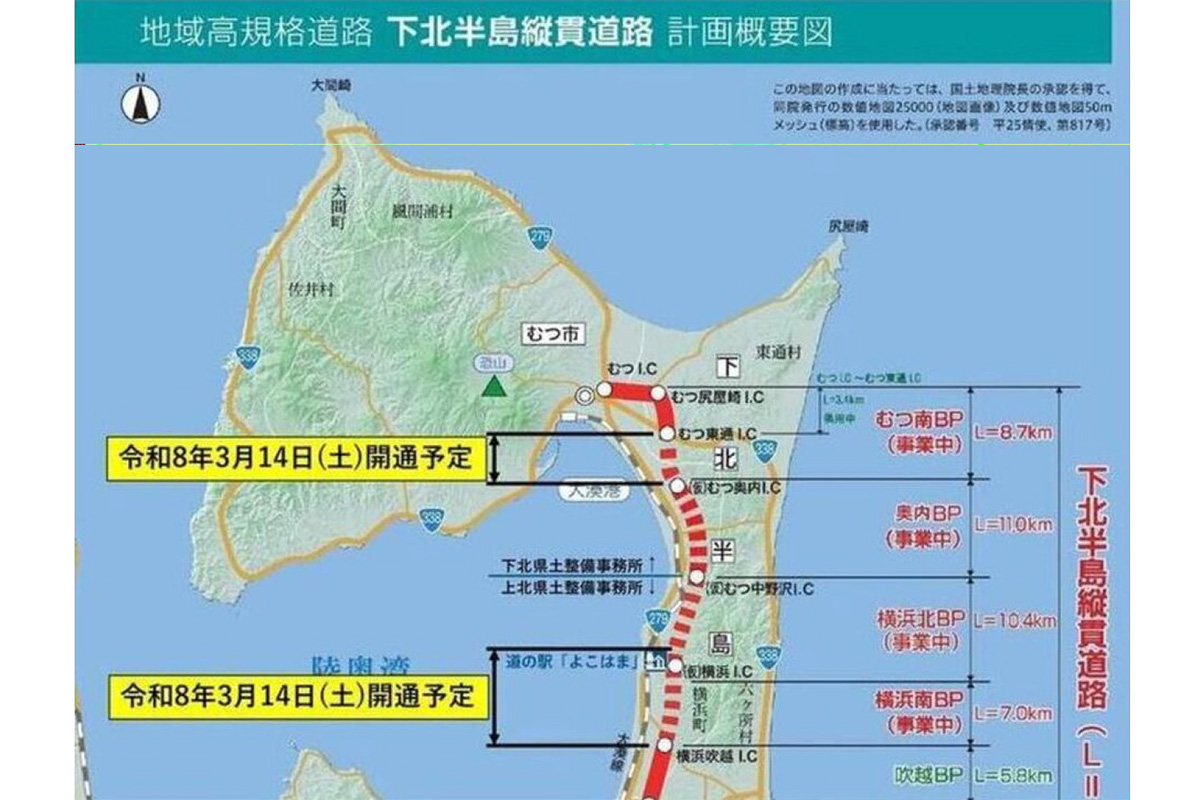 「下北に横浜IC出来るの!?」 3月14日に「横浜南バイパス」と「むつ南バイパス」同時開通! 下北半島縦貫道路がもっと快適に! どんな効果ある?