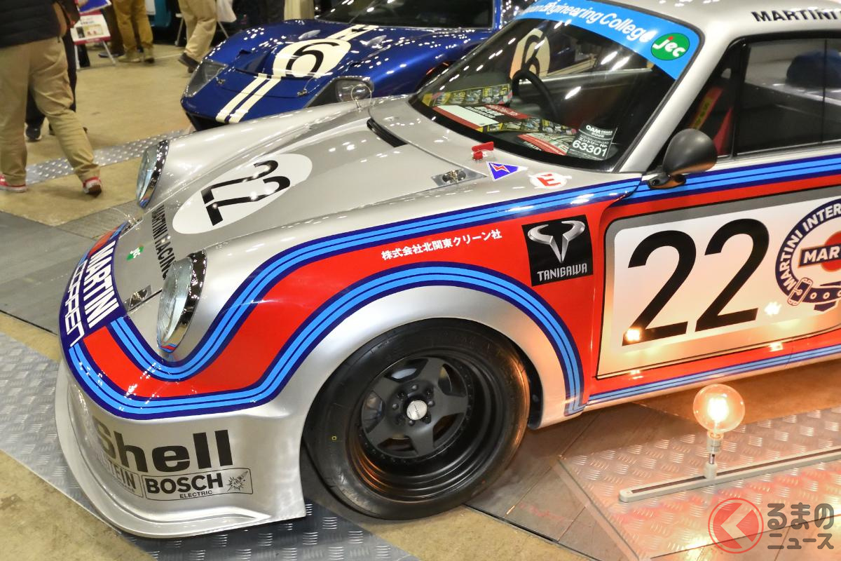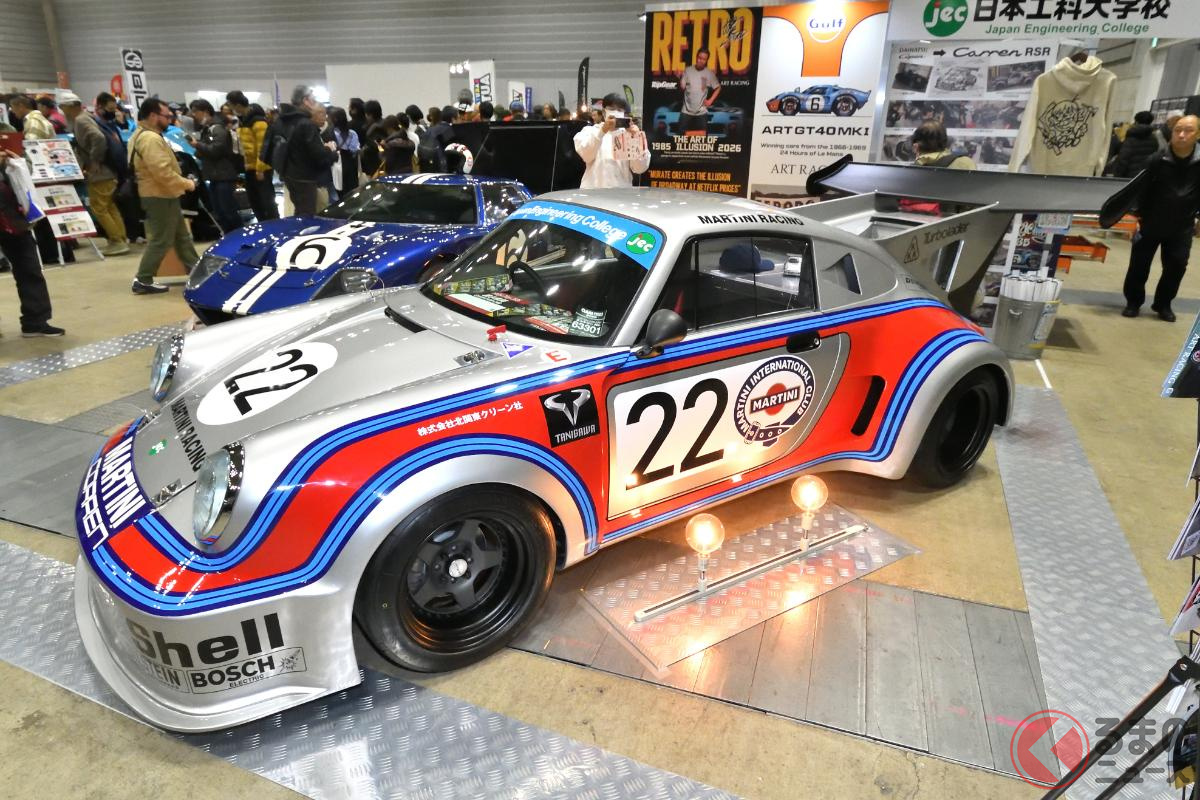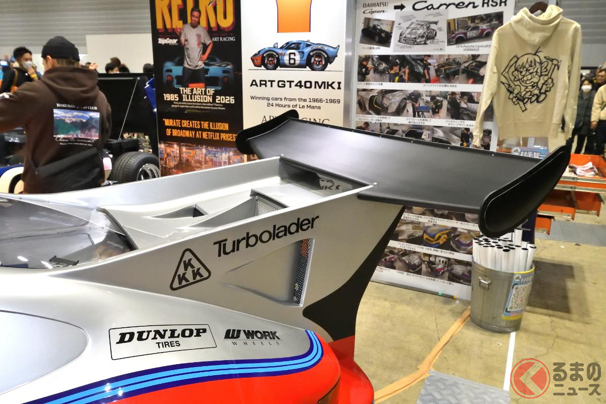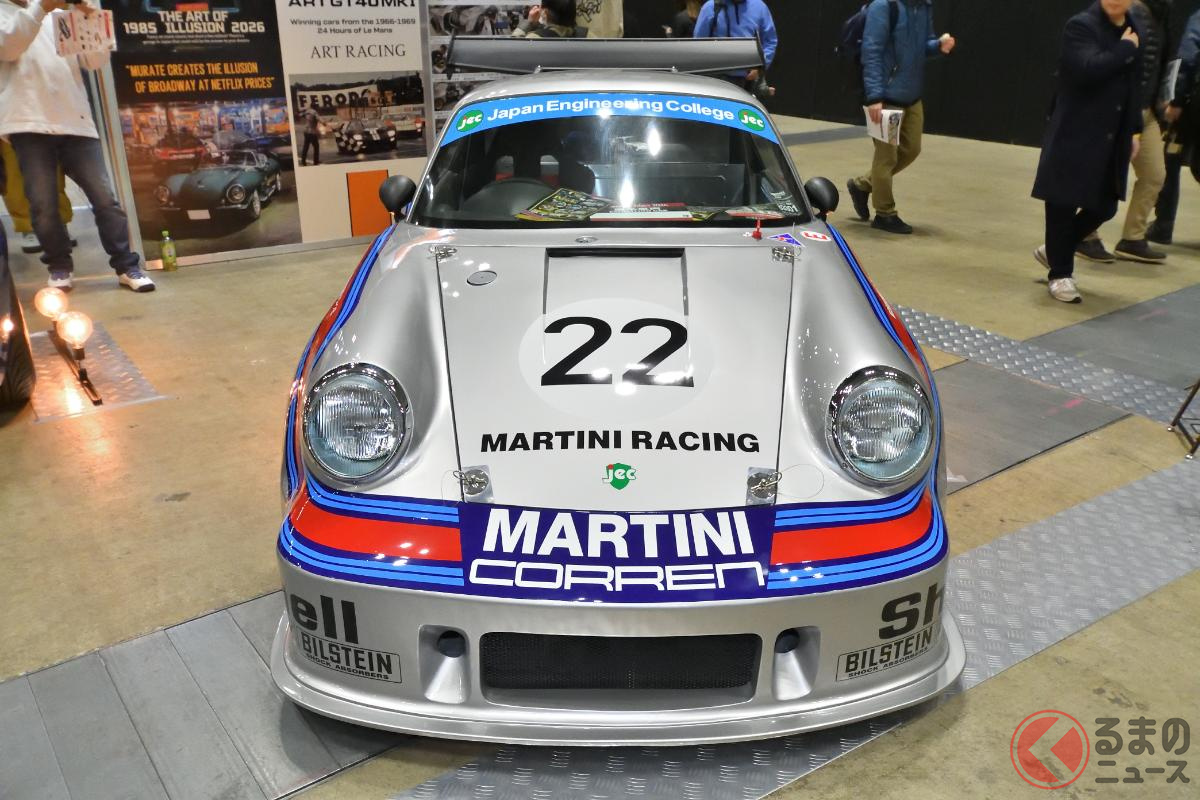 「ノスタルジック2デイズ2026」には、かつての名車を再現したいわゆるレプリカモデルも多数見られました。アートレーシングが展示したポルシェのレーシングカーレプリカもそのひとつ。しかも作ったのは学生で、さらにベースはあのクルマでした。