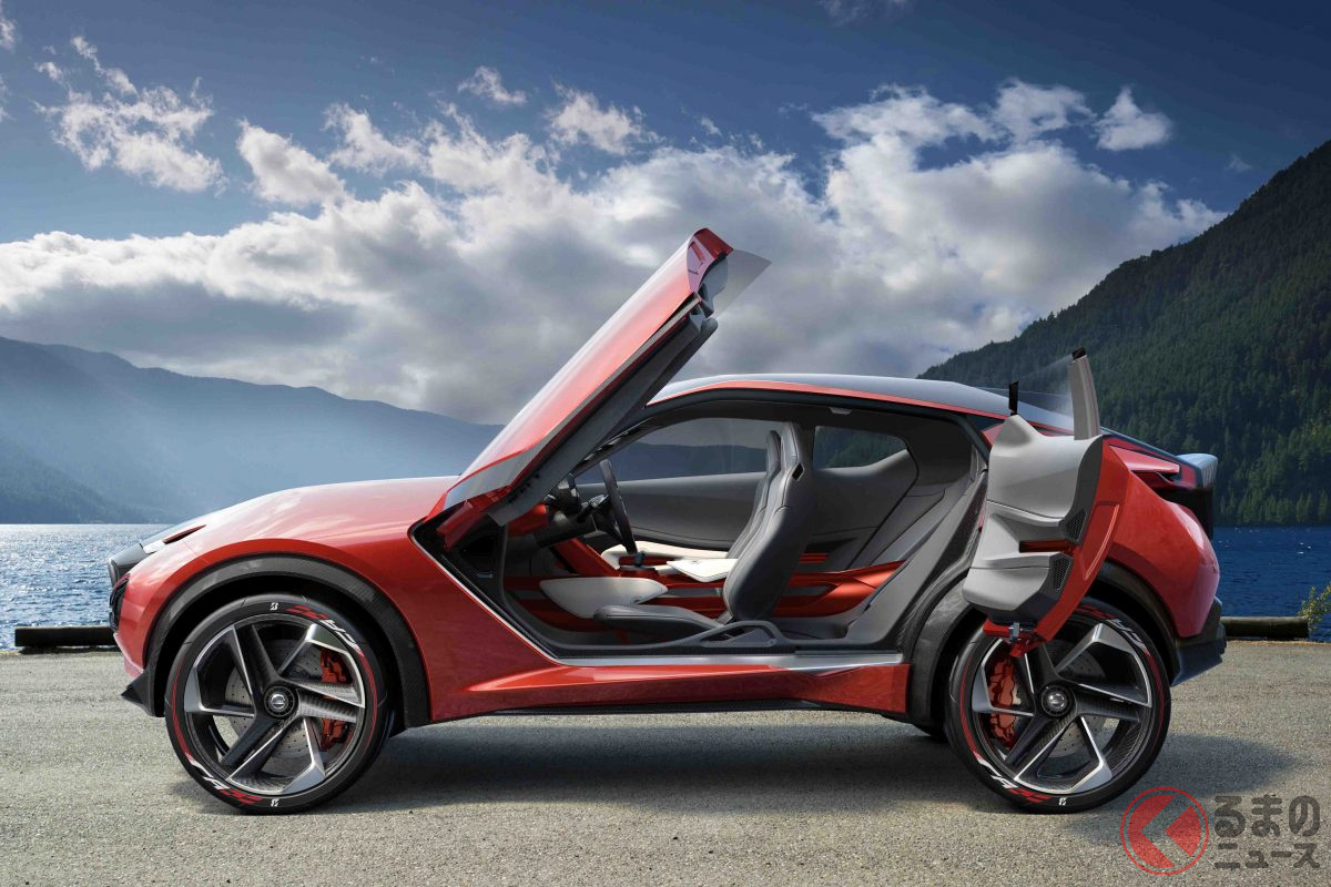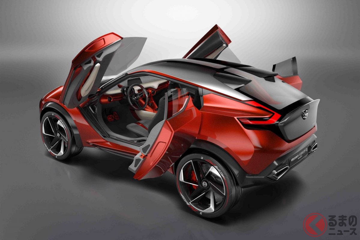 全長4.1mボディに「ガルウィング&後ろヒンジハーフドア」採用! 日産の「フェアレディZ風SUV」の魅力に再注目!伝説の「240Z」彷彿させる2015年公開の「グリップス」とは