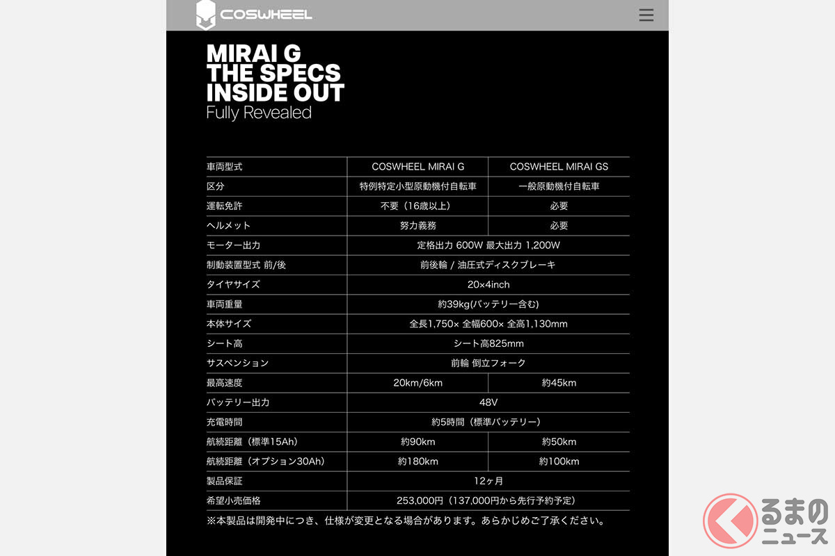 新型原付バイク「COSWHEEL MIRAI GS/G」の実力に注目! 累計10億円突破の「COSWHEEL」最新モデルがまたもや1億円を突破! 27度の坂も登るパワフルなモーター&39kgの軽量な車体が生み出す走行性能とは?