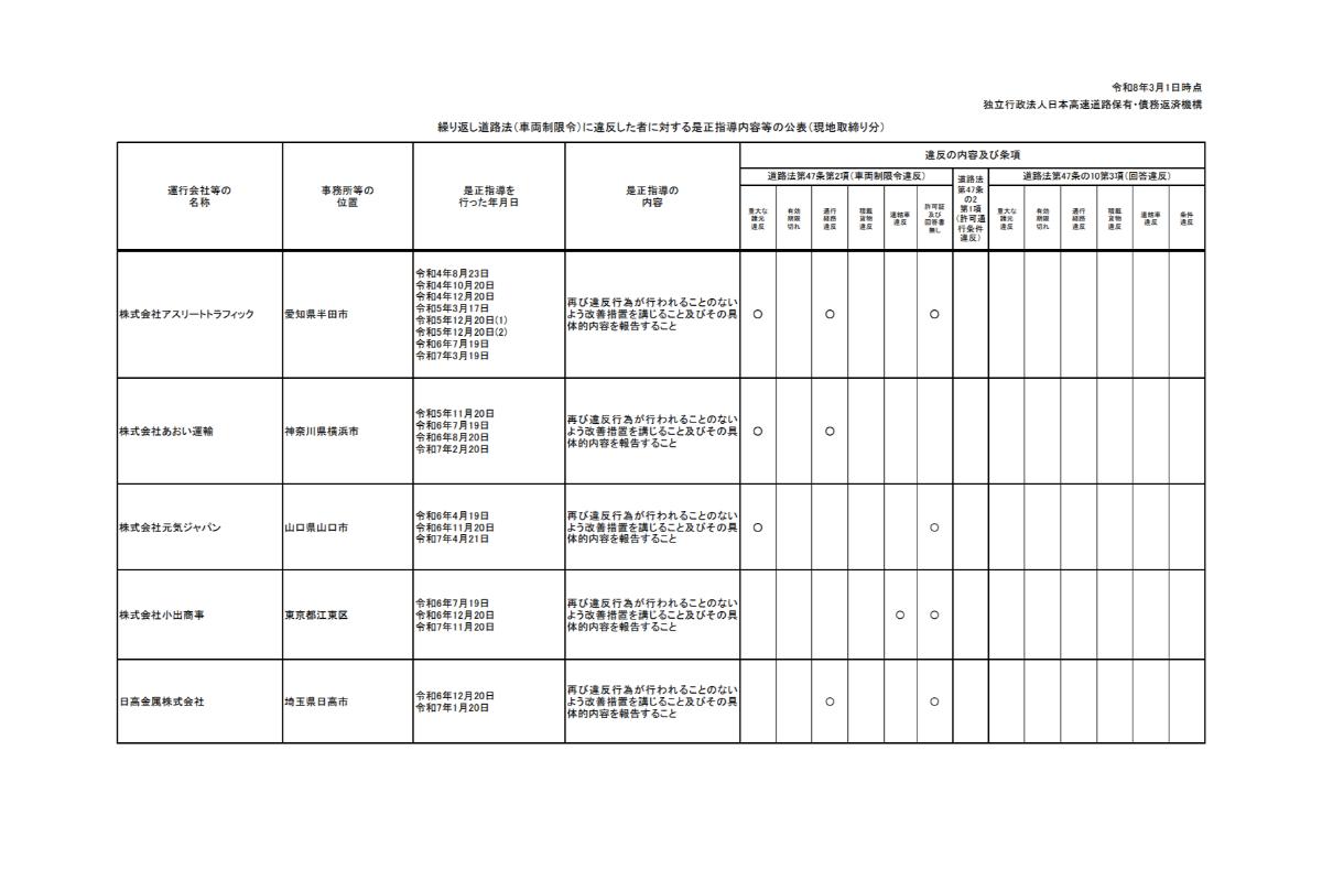 NEXCO西日本および日本高速道路保有・債務返済機構は、高速道路における車両制限令違反者に対する是正指導の内容を公表しました。再三の是正指導を受けているにもかかわらず、再び車両制限令違反を行う事業者もあります。