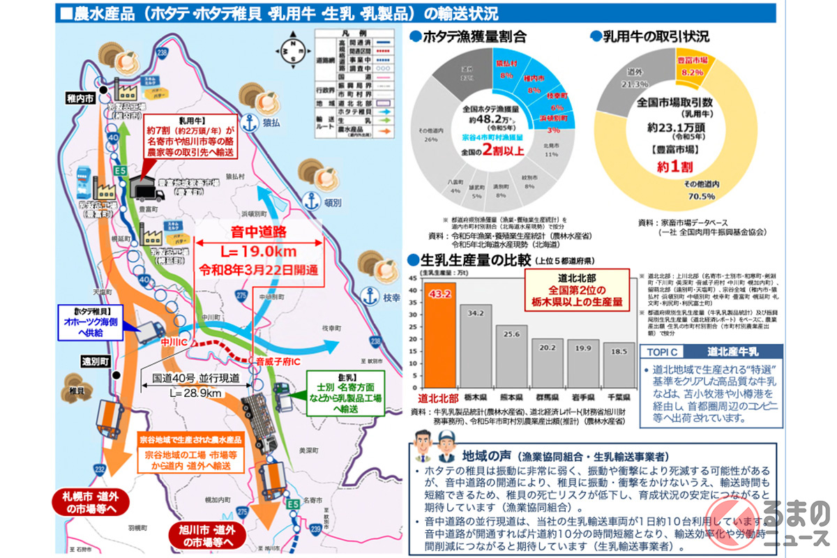 北海道の道北エリアを南北に結ぶ幹線道路、国道40号。その中でも厳しい自然環境にさらされる難所をバイパスする「音中道路(おとなかどうろ)」が、2026年3月22日16時に開通します。これにより音威子府村と中川町が自動車専用道路で結ばれ、冬期の雪崩による通行規制の回避や、広域的な移動の定時性・安全性が大幅に向上することが期待されています。