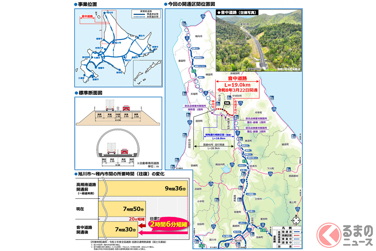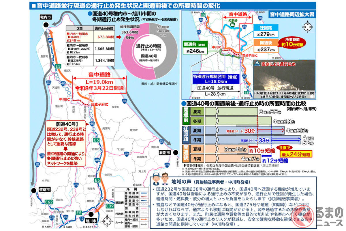 「旭川〜稚内間」の所要時間が“さらに短く”! “雪崩リスク”もある北海道の“難所”を回避! 国道40号「音中道路」が3月22日に開通へ