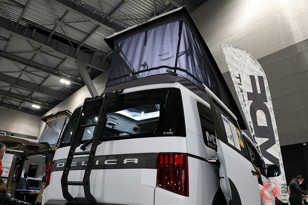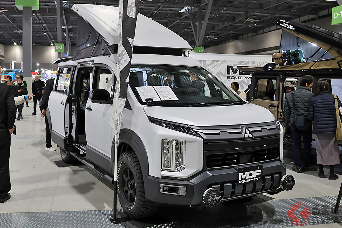 最新「“2階建て”SUVミニバン」!? タフ感増した「新型4WDモデル」に「家族4人」寝られる! 前席「回転機能」も嬉しい三菱「デリカD:5」車中泊カスタムカー「MDF D:POP」とは