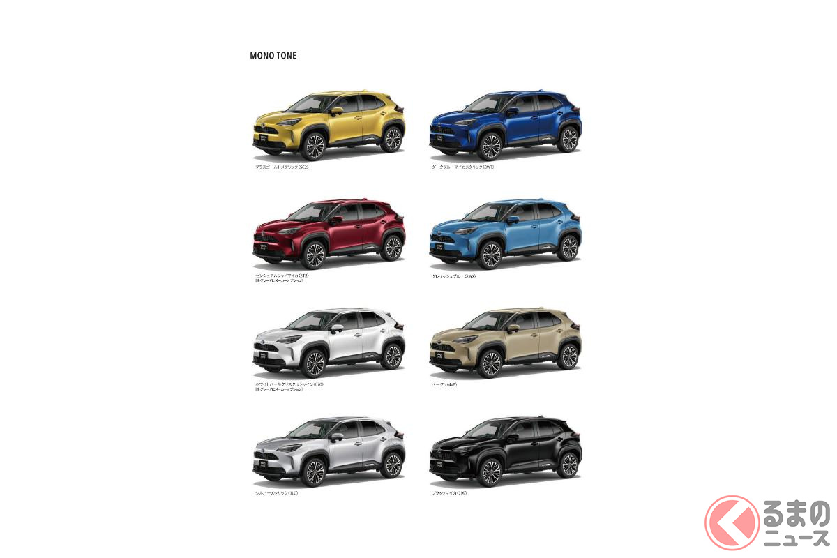 トヨタは2026年3月2日、コンパクトSUV「ヤリスクロス」を一部改良し発売しました。現状、どのようなボディカラーがラインナップされているのでしょうか。