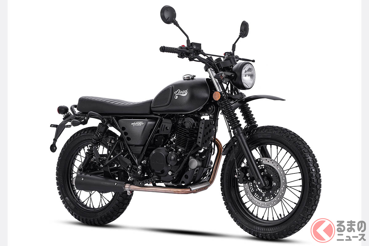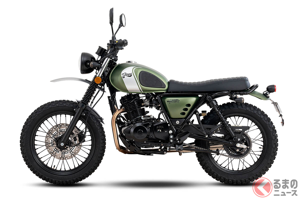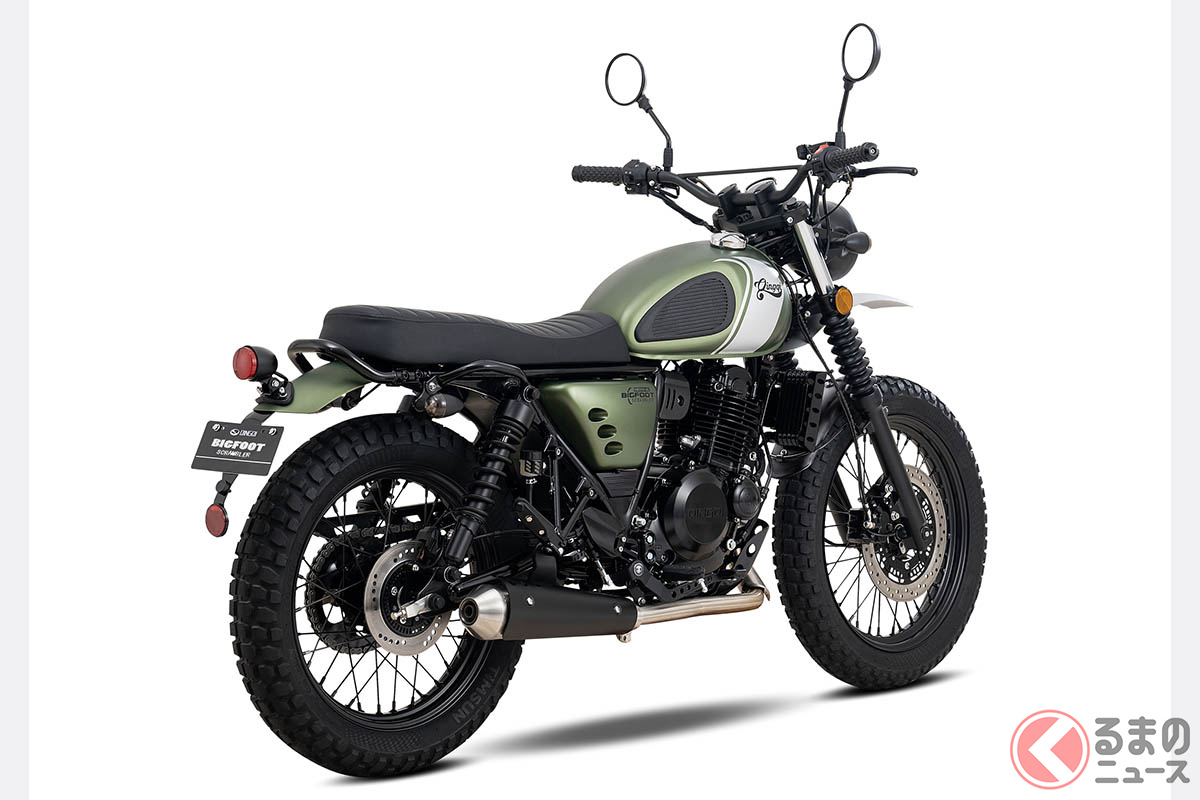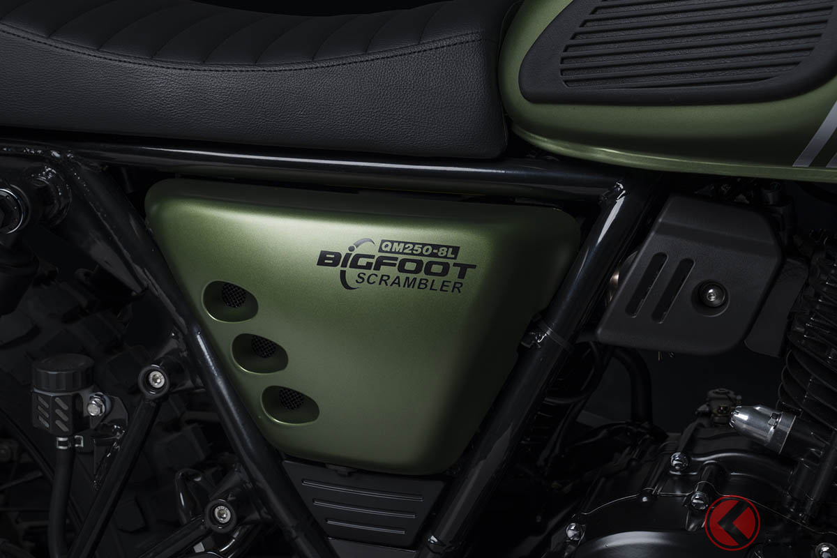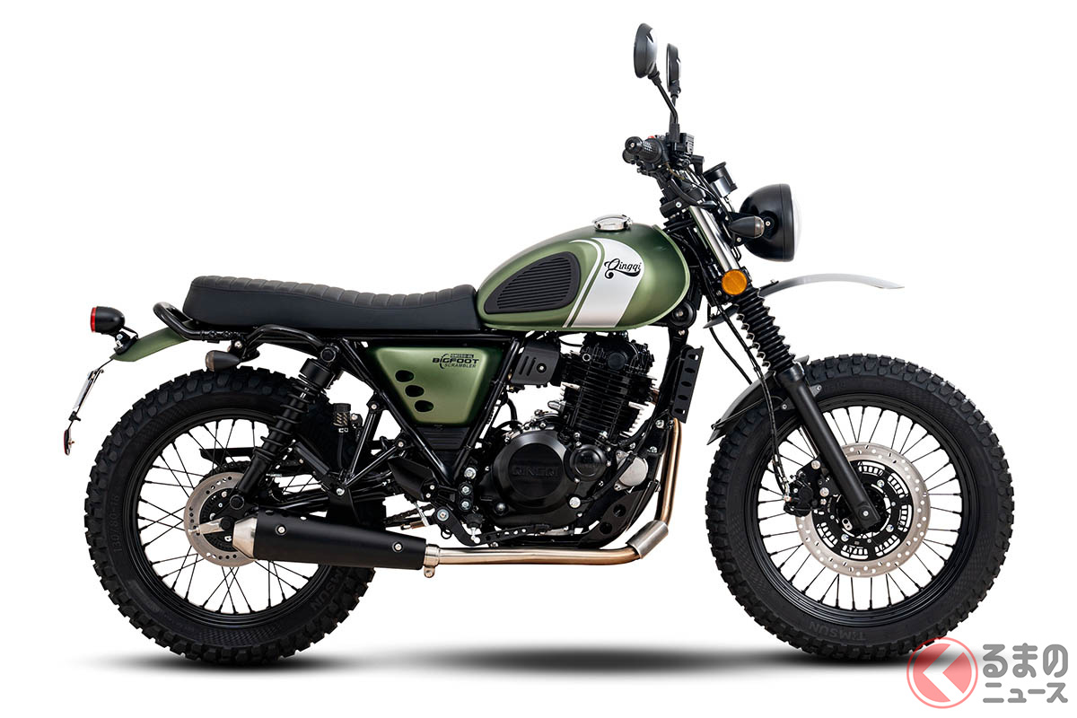 価格52万円! クインキー「“新型”軽二輪スクランブラー」国内導入! クラシカル外装&シンプル単気筒エンジンで気負わずに楽しめる「BIGFOOT250 Scrambler」登場