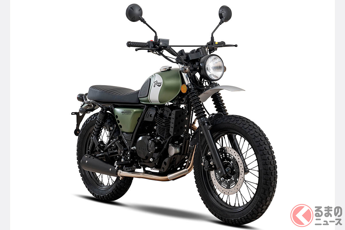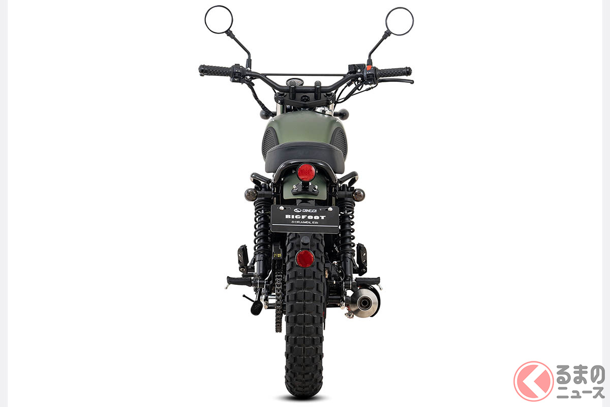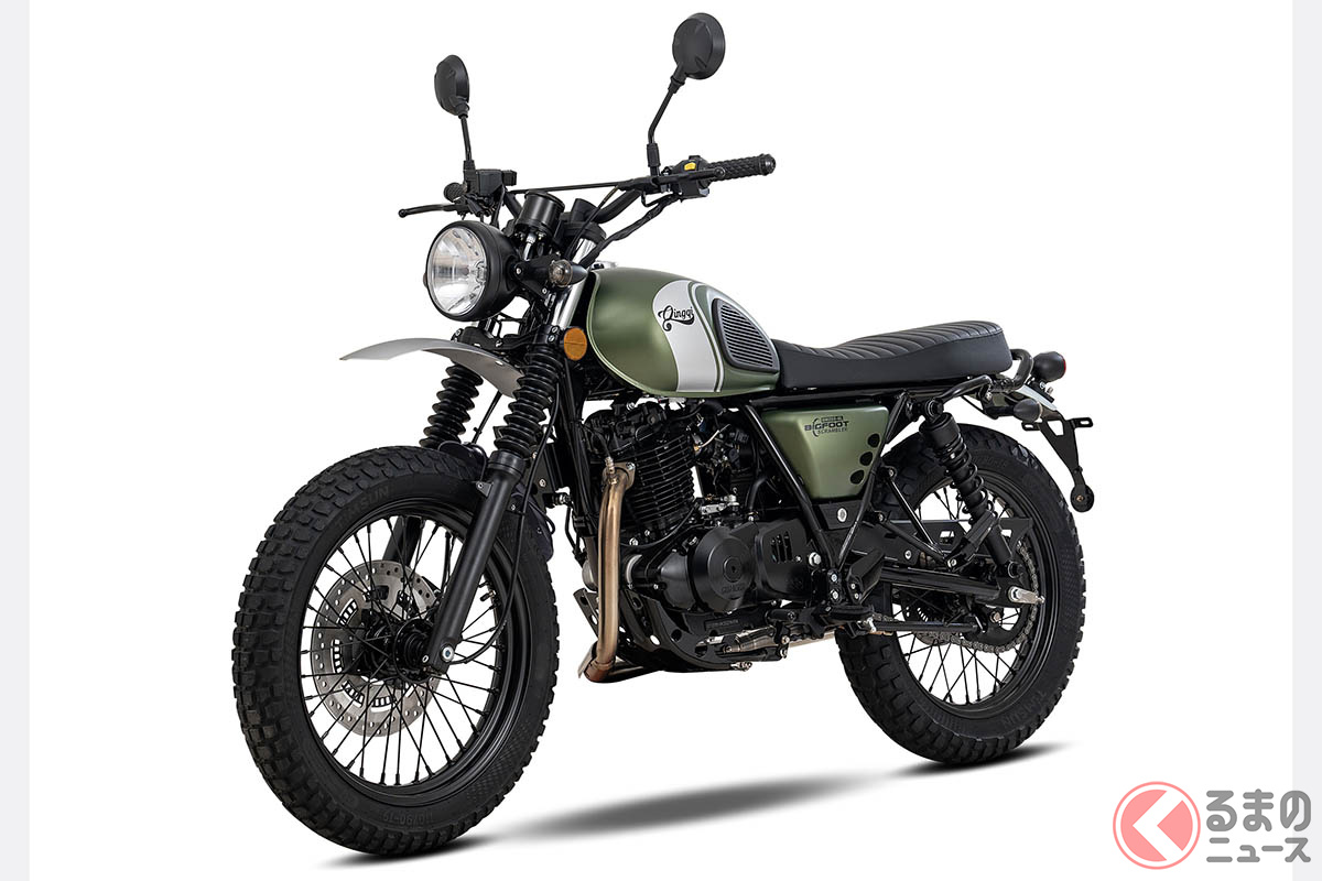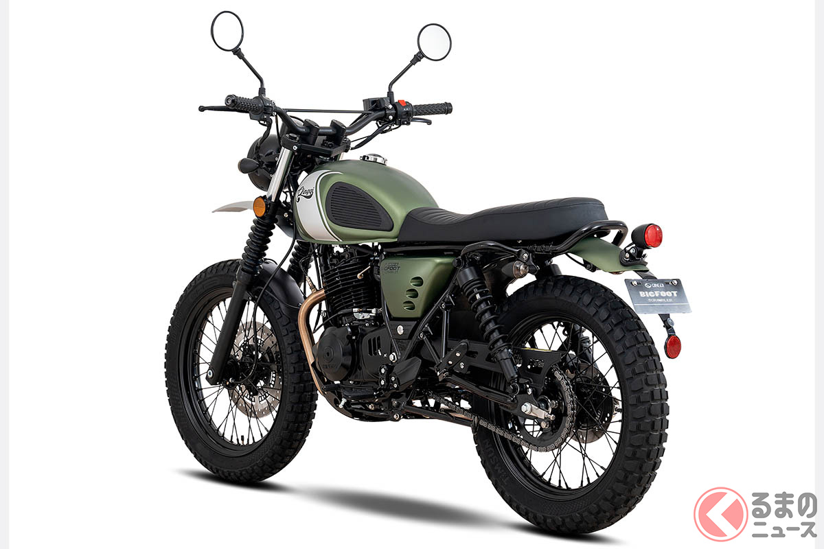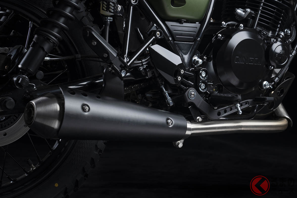 価格52万円! クインキー「“新型”軽二輪スクランブラー」国内導入! クラシカル外装&シンプル単気筒エンジンで気負わずに楽しめる「BIGFOOT250 Scrambler」登場