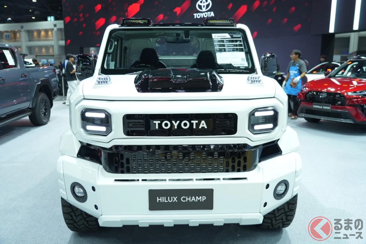 タイ・バンコクで開催されている「第47回バンコク国際モーターショー2026」において、トヨタのタイ法人であるトヨタモータータイランドは、多種多様なモデルを展示しています。その中で、一際目を引く存在が「ハイラックスチャンプ」のカスタム仕様車です。