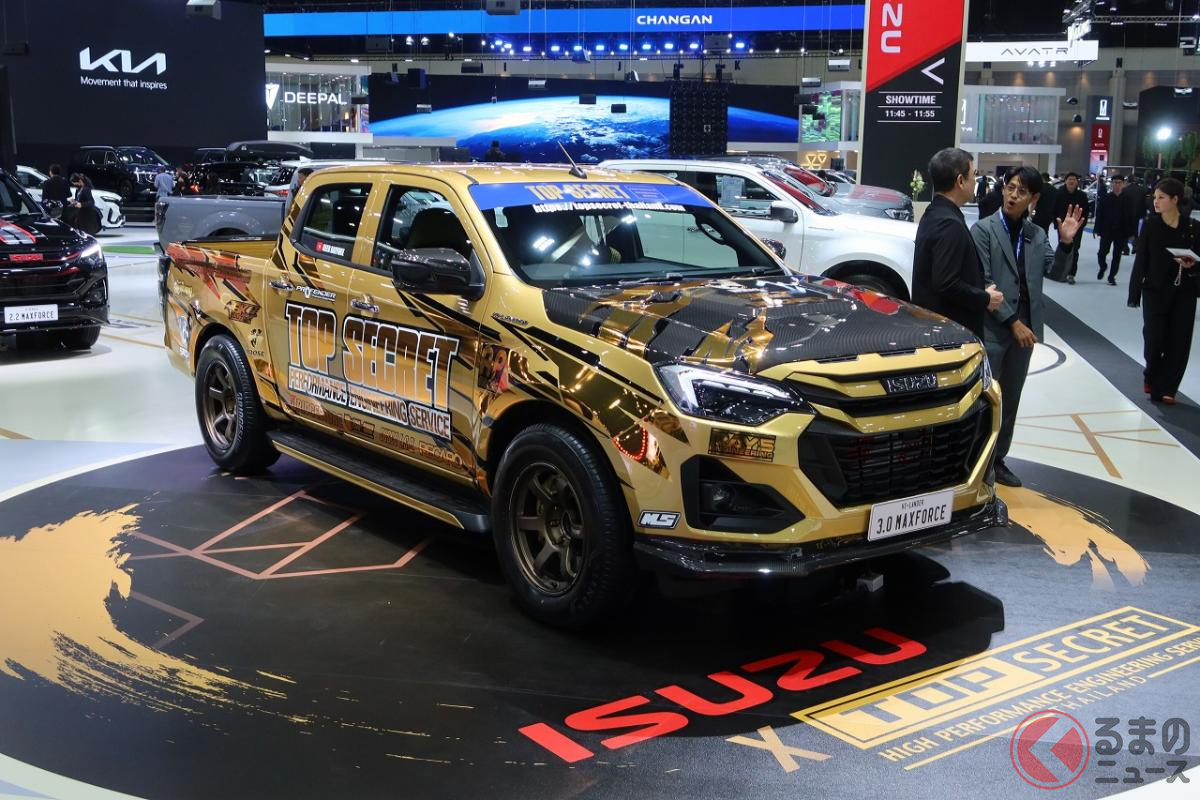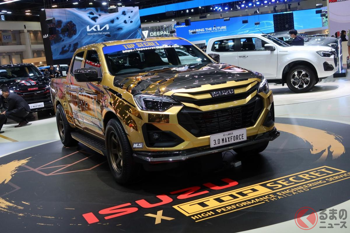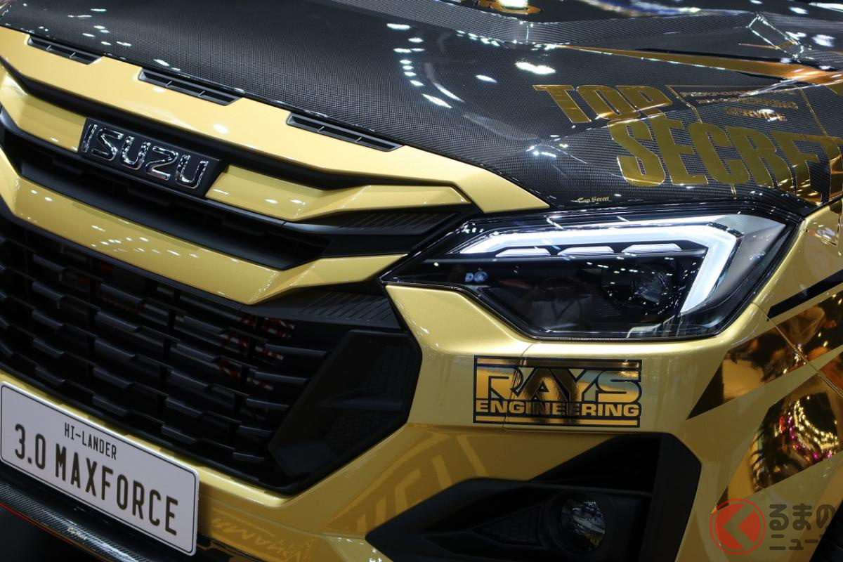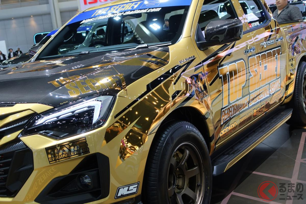 6速MT搭載! 高性能3リッターターボの「ド迫力マシン」にくぎ付け! 精悍「黄金ボディ」もカッコいいメーカー公認の“チューニングモデル”「いすゞ D-MAX TOPSECRET仕様」タイに登場