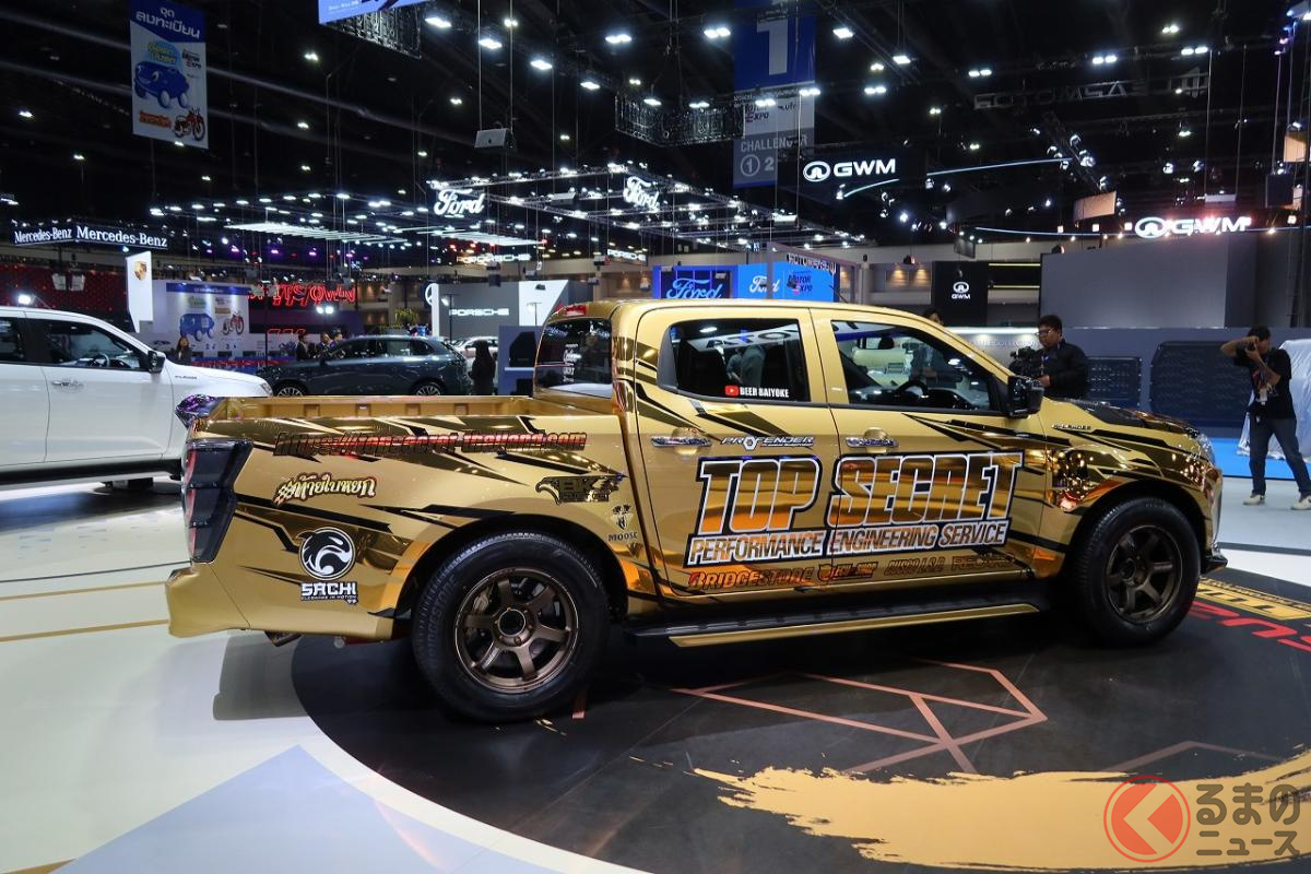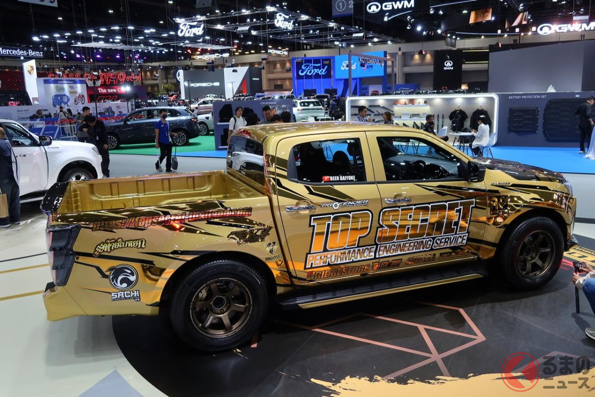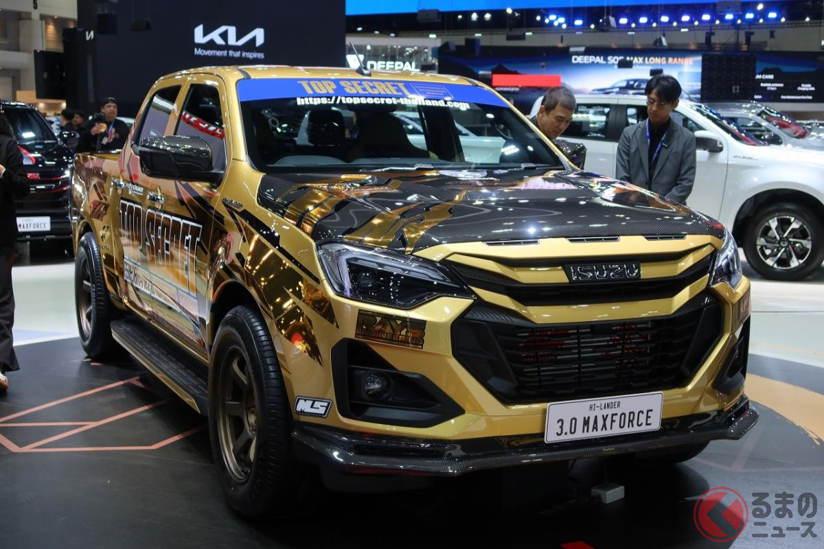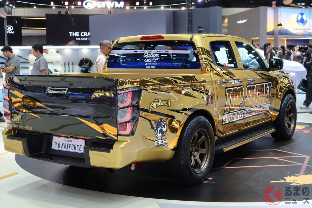 6速MT搭載! 高性能3リッターターボの「ド迫力マシン」にくぎ付け! 精悍「黄金ボディ」もカッコいいメーカー公認の“チューニングモデル”「いすゞ D-MAX TOPSECRET仕様」タイに登場