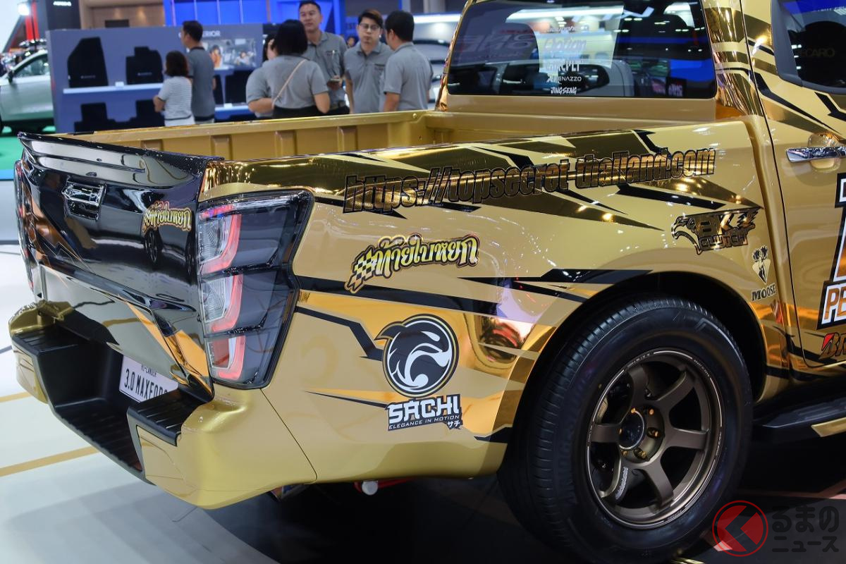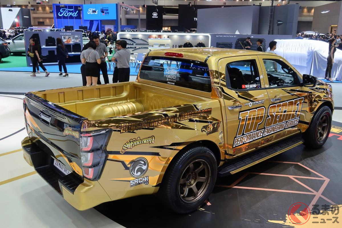 タイのモーターショーには、日本では考えられないド迫力のチューニングマシンが、いわば「メーカー公認」でブースに出展されていたりします。今回紹介するいすゞ「D-MAX」のカスタマイズカーも、そんな1台でした。