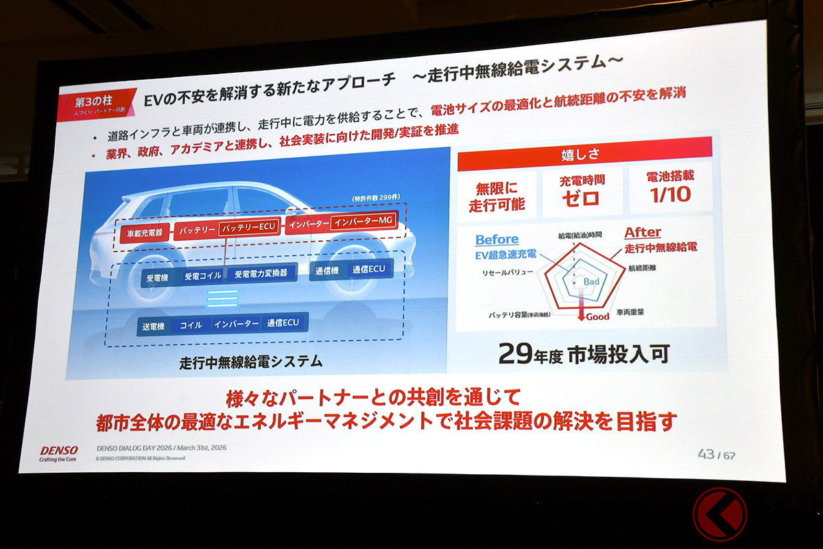 デンソー、2030年に向けたビジョン「CORE 2030」発表! 注目の「走行中給電」の進捗は? EVの課題解決、29年度目指す
