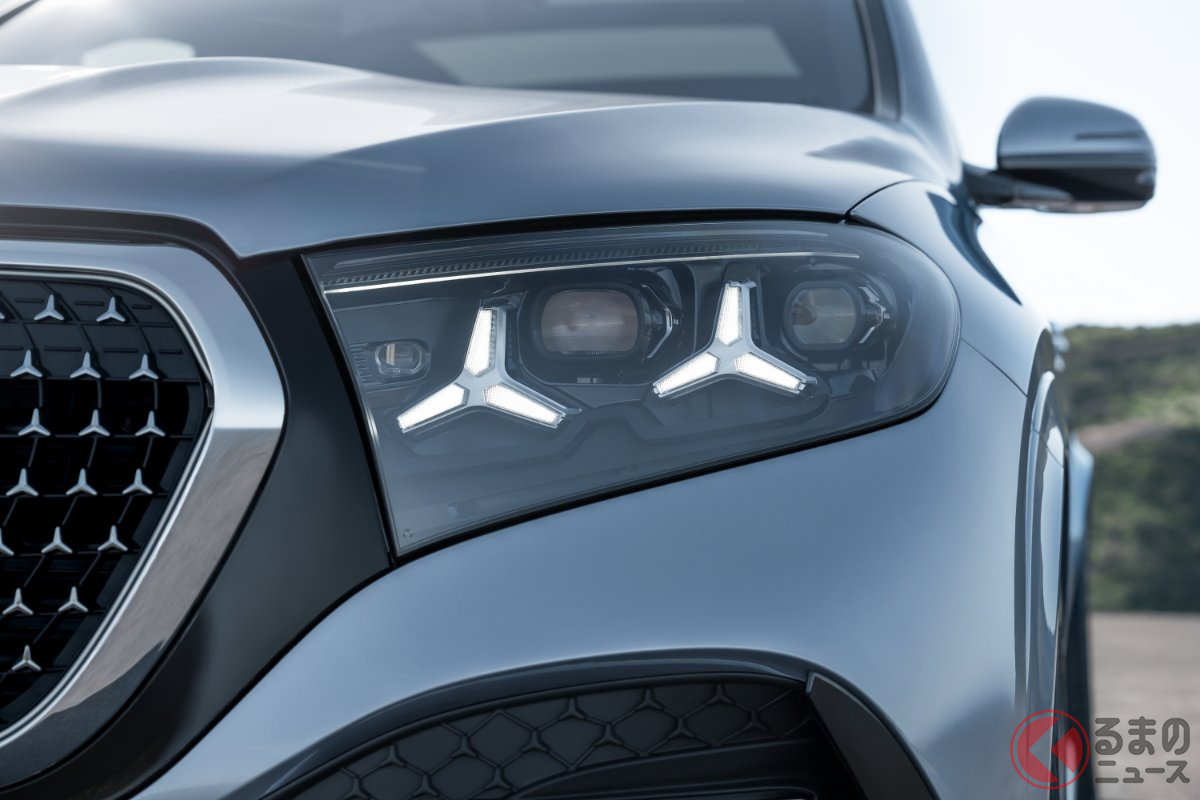4リッター「V8 TT」で“530馬力超え”! 新型「“3列7人乗り”四駆SUV」世界初公開! 光る「グリル」&“星型ヘッドランプ”採用のメルセデス・ベンツ「GLE」独国で登場