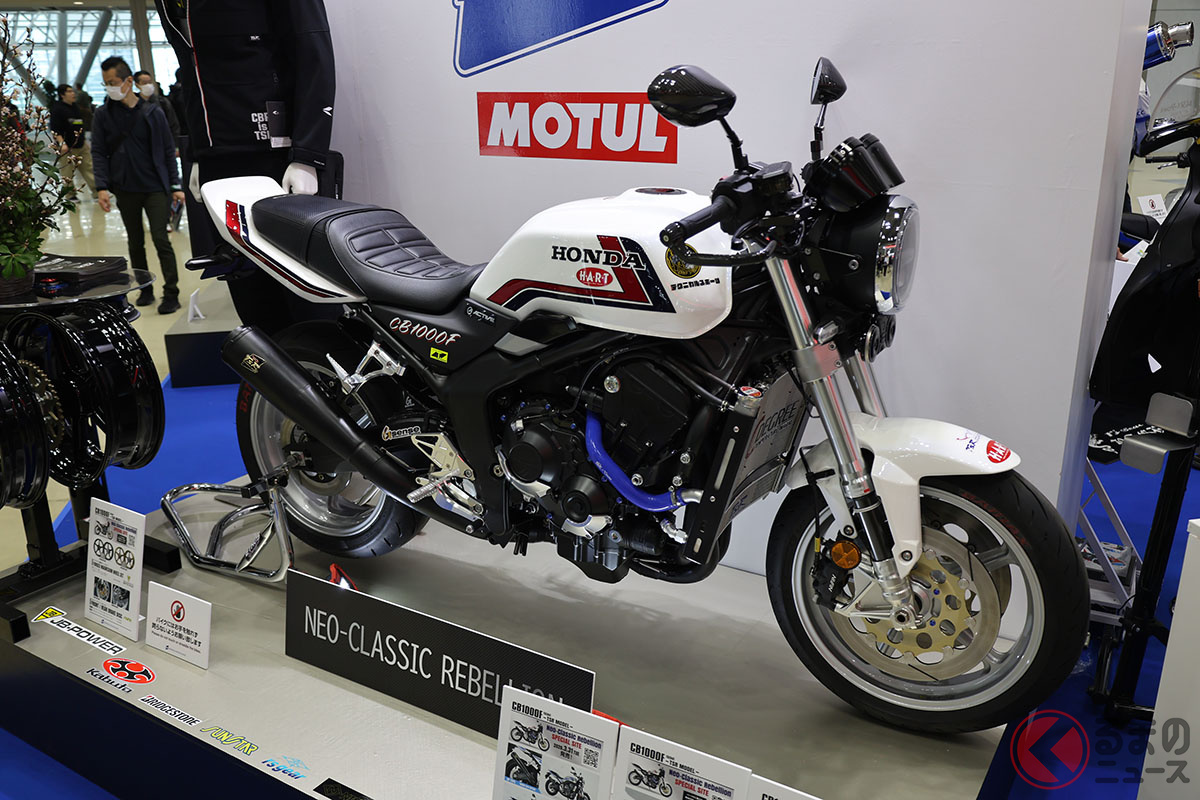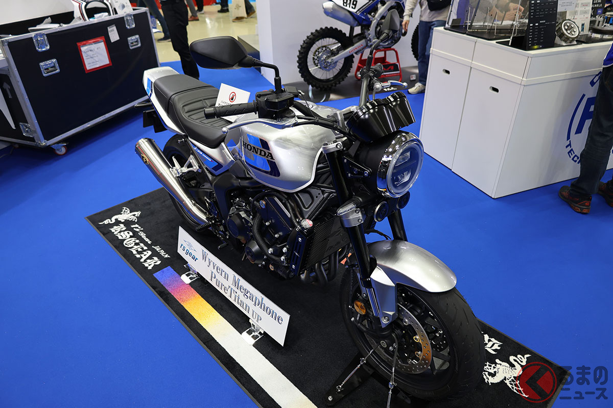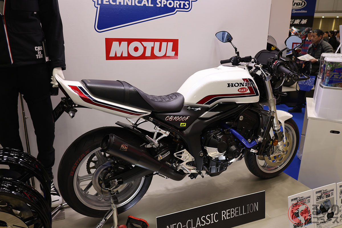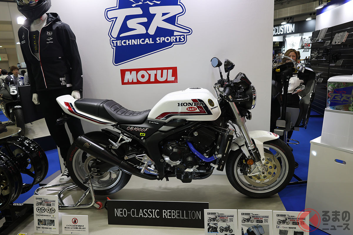 三重県鈴鹿市に本拠地を置くモーターサイクル用パーツメーカー兼レーシングチームの「TSR(テクニカル・スポーツ・レーシング)」は、2026年3月27日から開催された「東京モーターサイクルショー2026」の会場で、ホンダ「CB1000F」用のカスタムパーツを装着した車両を展示しました。