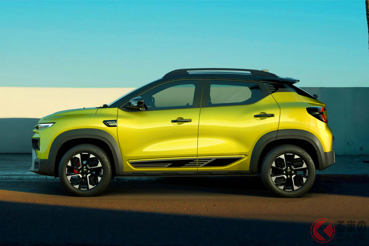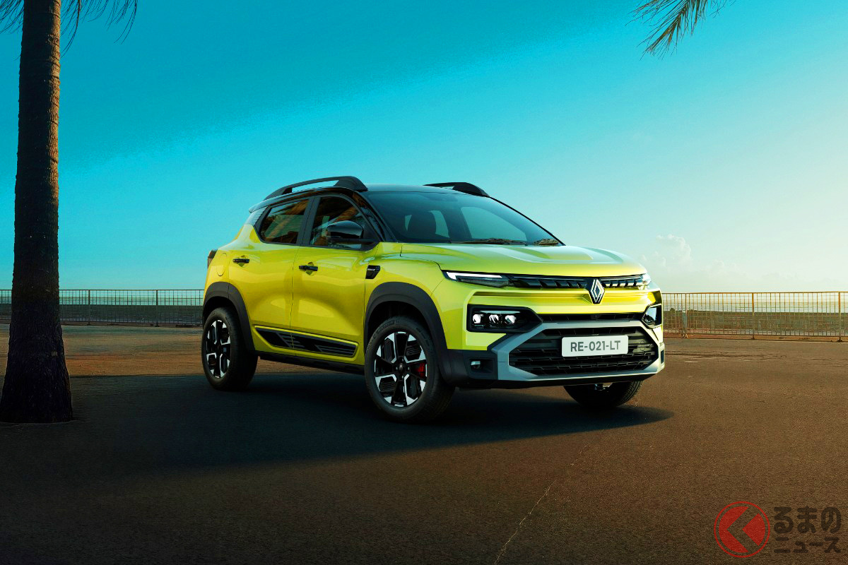 新車約99万円の「“ちいさい”SUV」! 全長4m以下でも存在感強めなデザイン&“ジムニー”級「地上高」採用! 1リッター「ターボ」×MT搭載のルノー「キガー」印国モデルとは