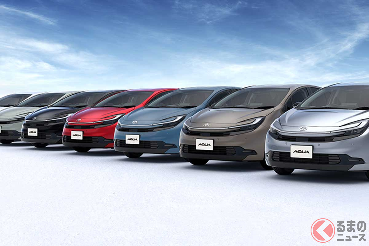 1リッターで34km超え! “4年ぶり大幅刷新”のトヨタ最新型「“多彩な”コンパクトカー」に注目! 「ハンマーヘッド」顔に激変の「アクア」のカラーバリエーションとは