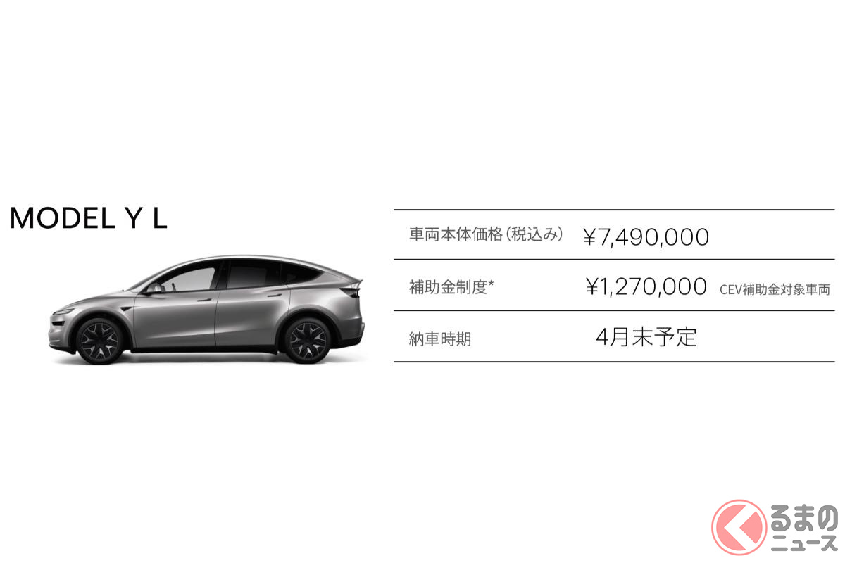 新型「高級3列6人乗りSUV」日本初公開! 2列目独立キャプテンシート採用!? 0-100加速5秒のテスラ「Model Y L」発売