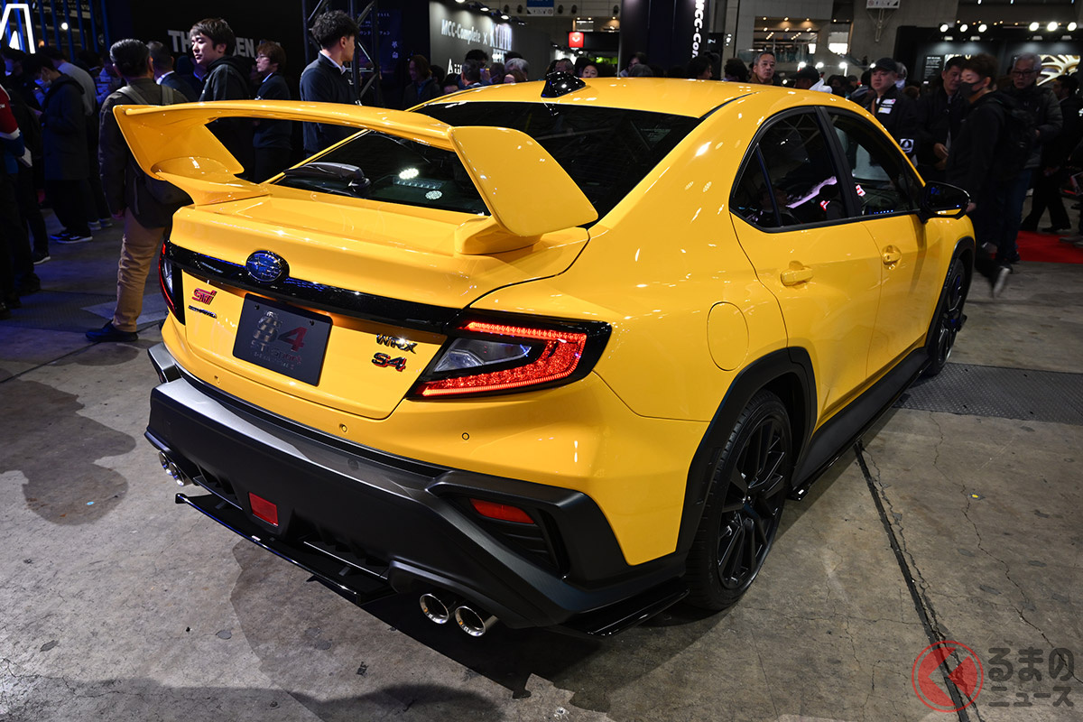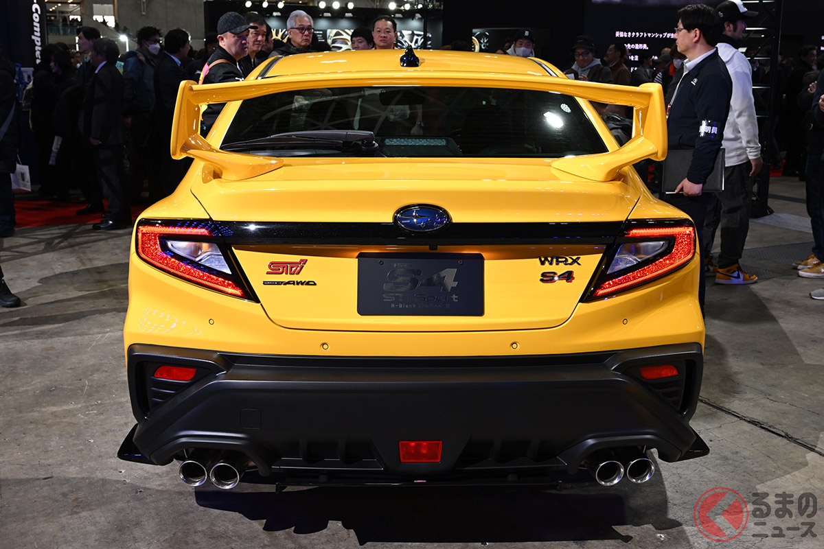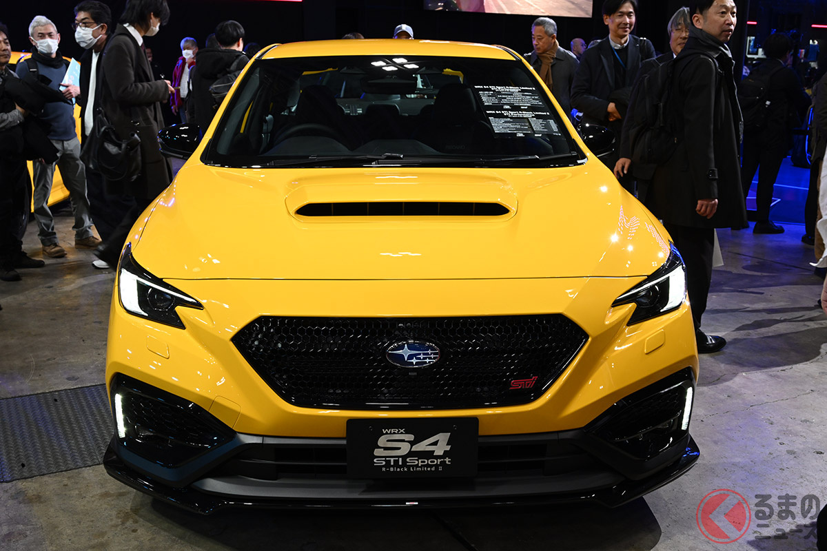 530万円! スバル新型「スポーツセダン」に注目! パワフルなボクサーターボ×鮮烈イエローがめちゃスポーティ! 黒アクセントが精悍すぎる特別な「WRX S4 STIスポーツR」とは!
