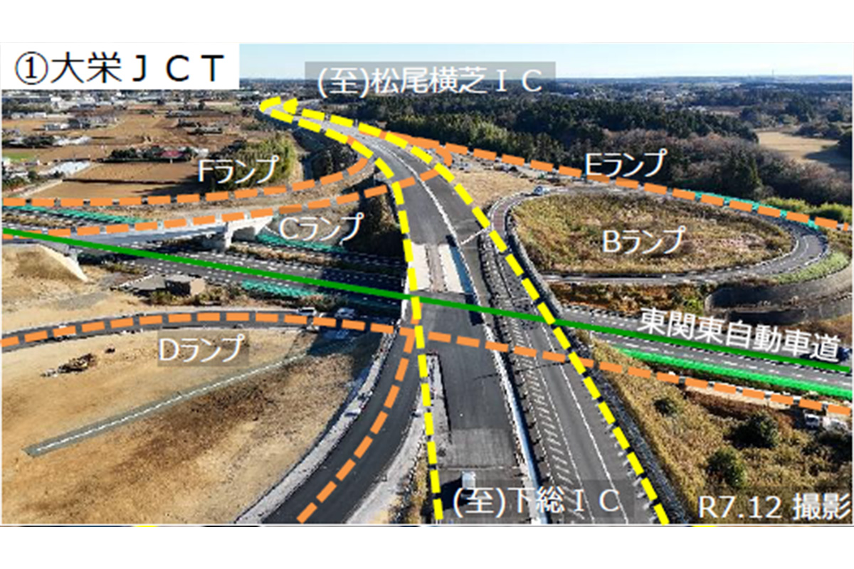 首都圏の道路網を形成する圏央道で、千葉県内の未開通区間である大栄JCTから松尾横芝IC間の進捗状況が公表されました。全線の用地取得が完了し、懸案だった盛土の土質課題にも対策が講じられています。大栄JCTから多古IC間は令和8年秋頃に先行開通し、全線は令和8年度の開通を目指して工事が進行中です。