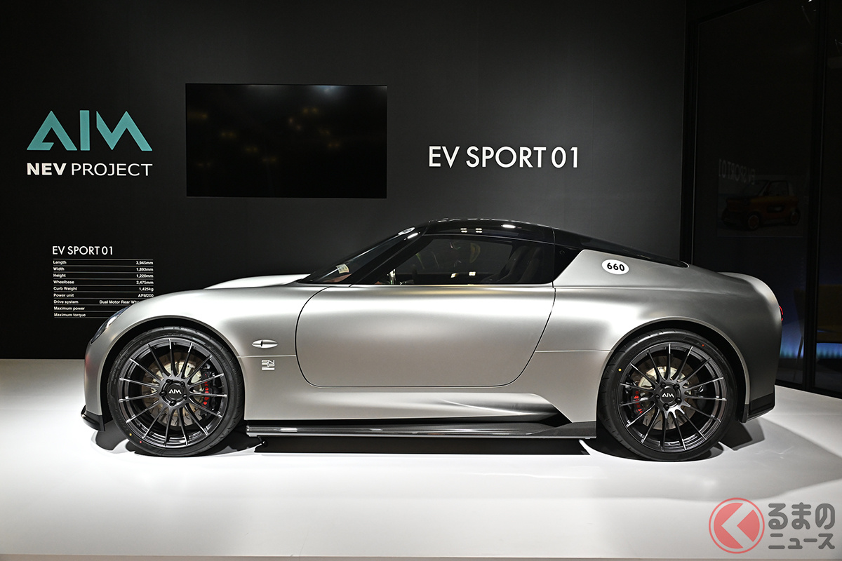 斬新「“後輪駆動”スポーツカー」に注目ッ! 全長3.9mボディに「レトロ風」のロングノーズデザインを採用! 「490馬力」パワトレやガバッと開く「画期的ドア」も目を惹く「AIM EV SPORT 01」とは?