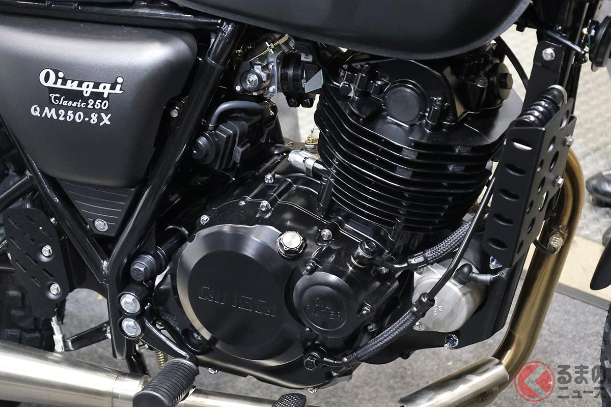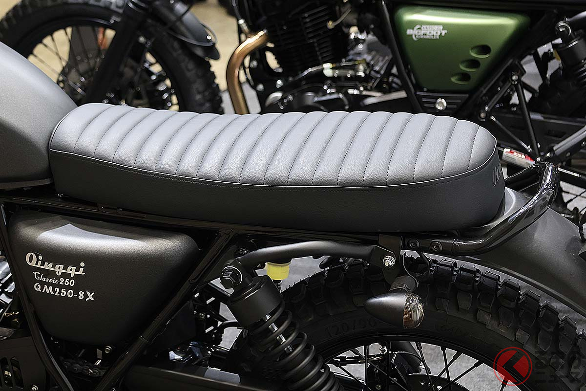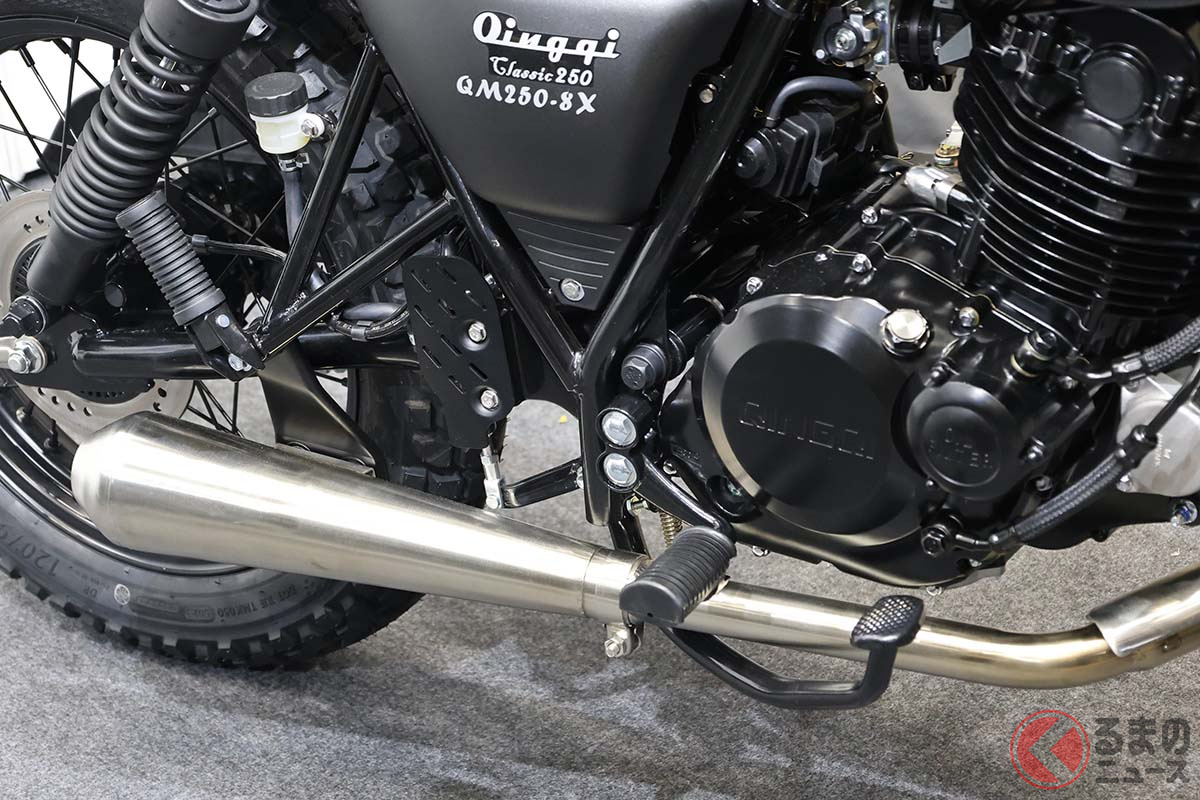 価格50万円切! 日本初公開の「“超”レトロモデル」に反響! 「すごい好きだ」「値段もお手頃だし週末いじるのにいい」 クインキーの新型「クラシック250」はどんなバイク?