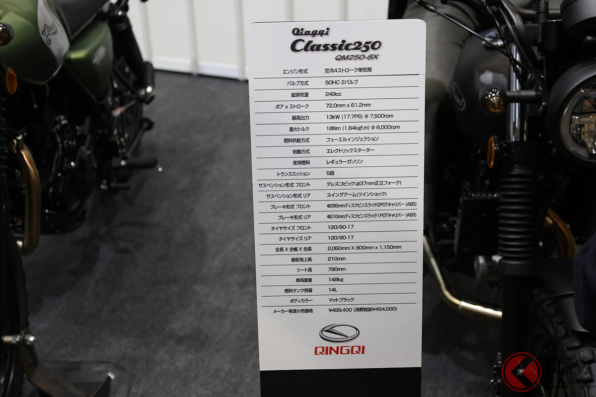 ヒョースンモーター・ジャパンは、「東京モーターサイクルショー2026」で中国のモーターサイクルメーカー「QINGQI Motorcycle(クインキーモーターサイクル)」製の新型モデル「クラシック250」を出展しました。日本初上陸となる注目のネオレトロモデルに対し、SNSではどのような反響が寄せられたのでしょうか。