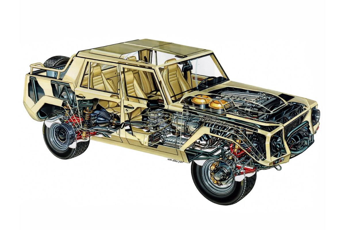 V12エンジンの「4人乗りSUV」出現!? 全長4.9mに「カウンタックエンジン」×5速MT搭載! 超・重量級車体&豪華内装のランボルギーニ「LM002」“国王所有車”が米AACで登場