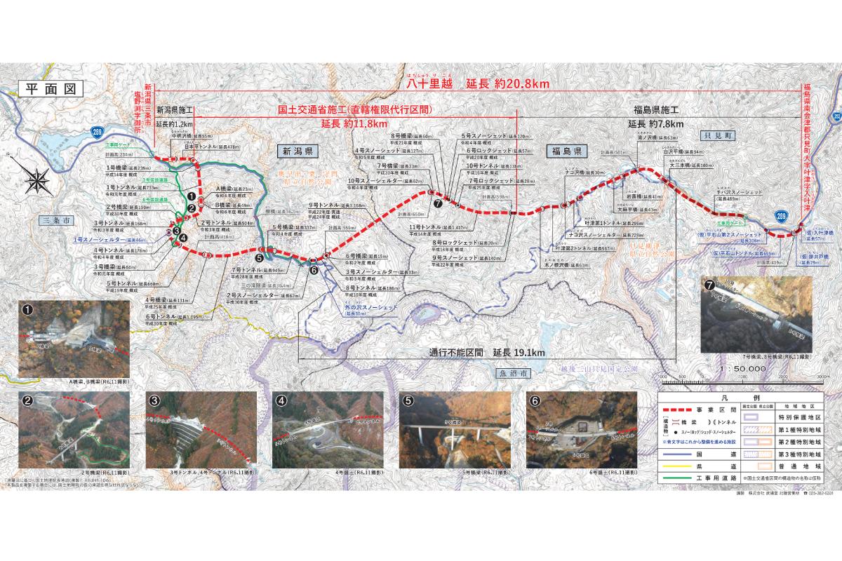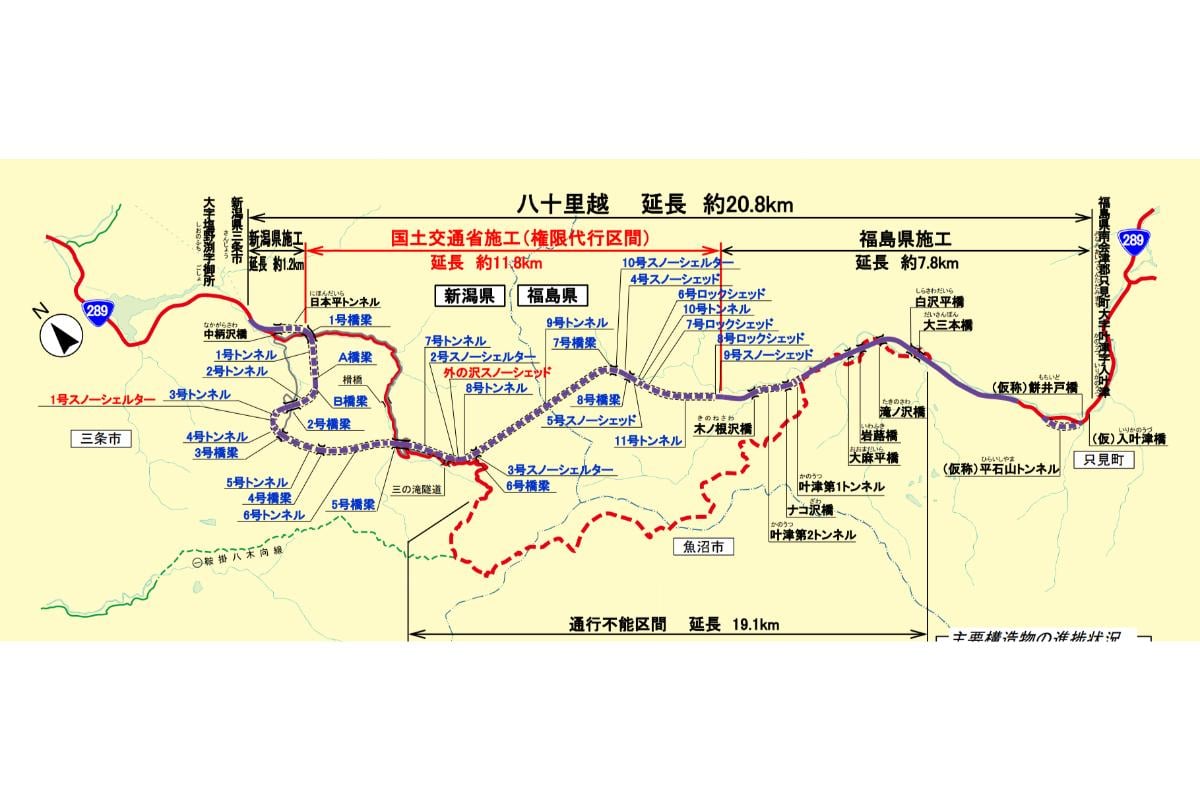 新潟県と福島県の県境に位置する山間部で国道289号「八十里越」の工事が進められています。2026年2月に国土交通省 長岡事務所が工事の進捗状況をまとめたレポートを公開しました。