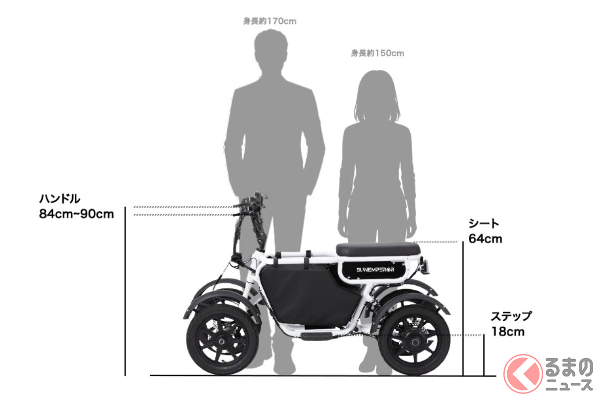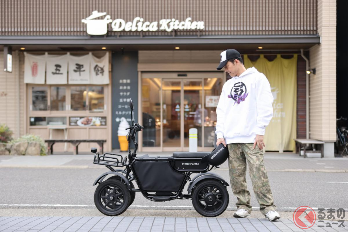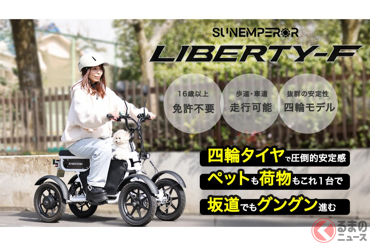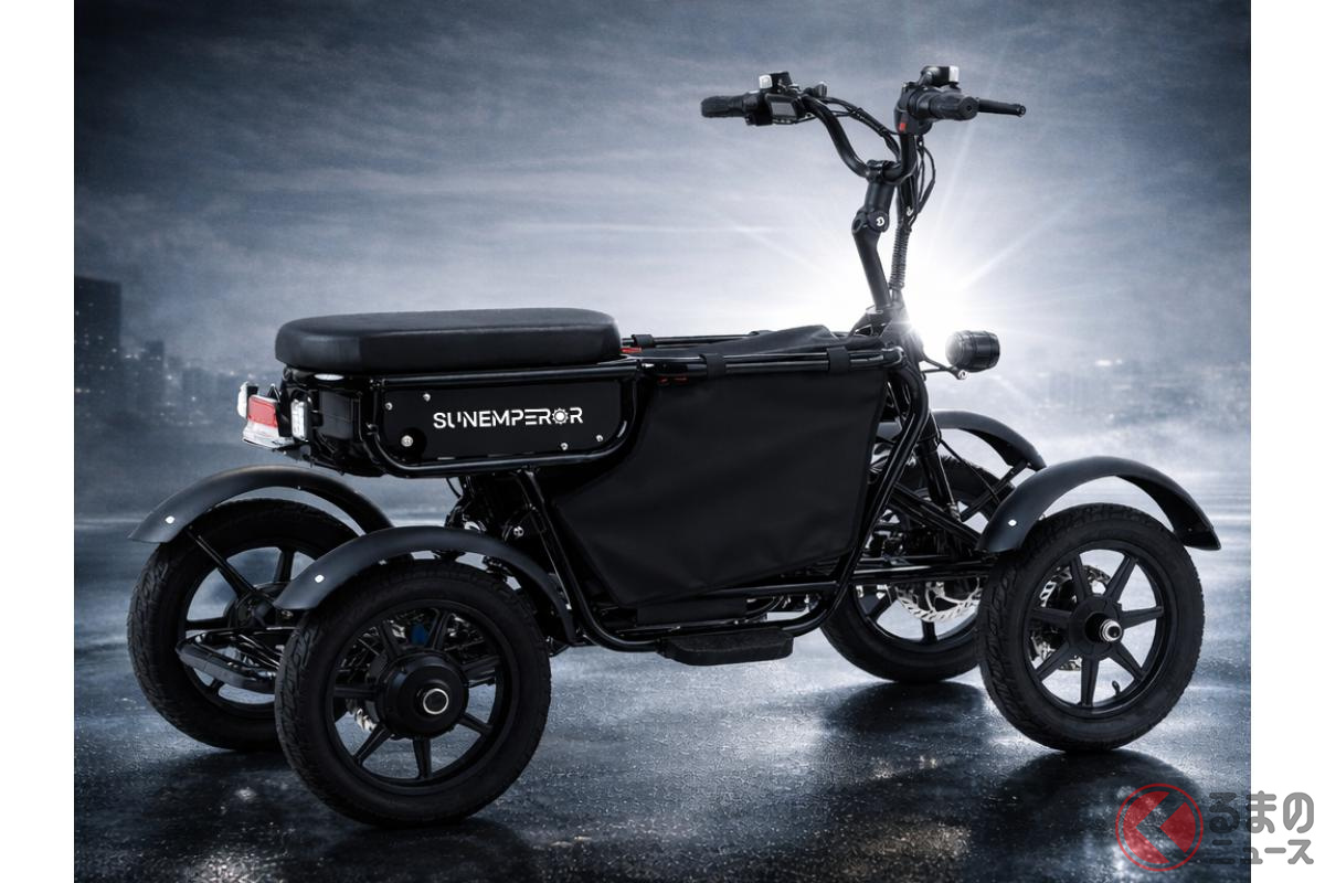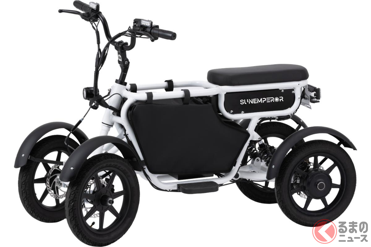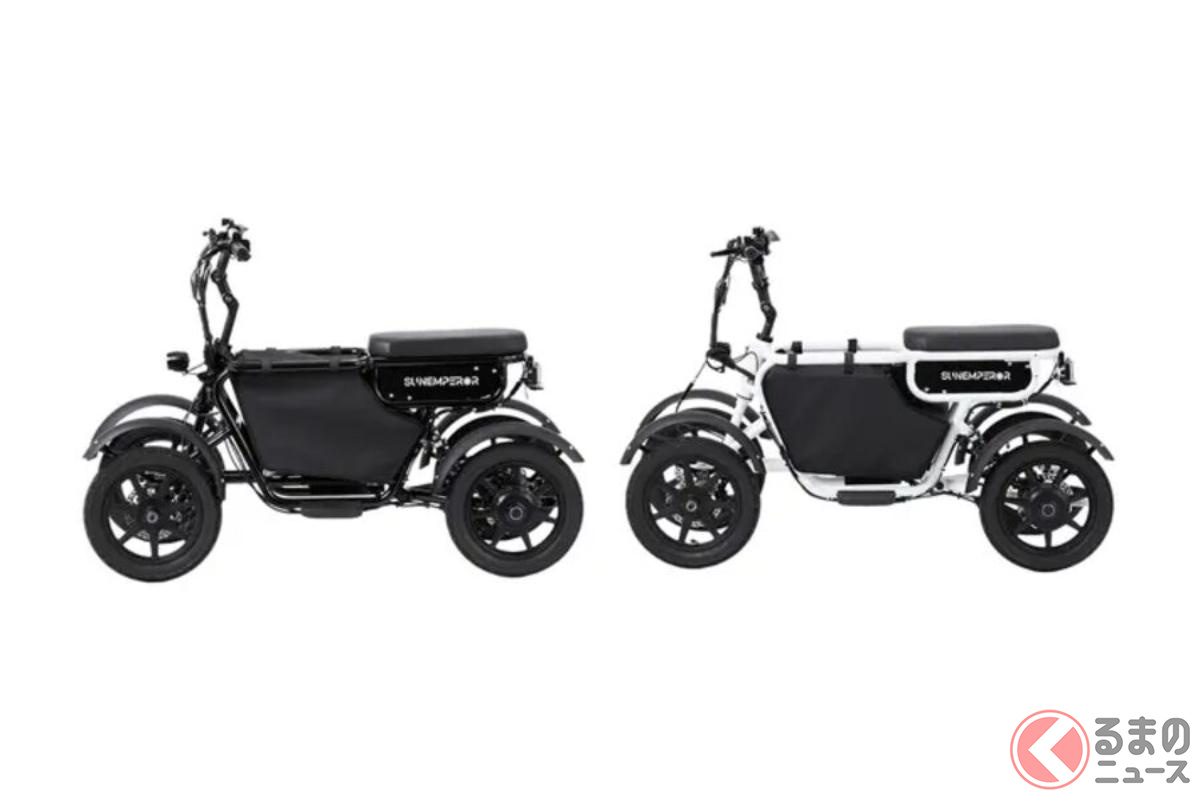 “免許不要”で乗れる! 新型「4輪車」初公開! ひろびろ荷物スペース&“安定性”が圧倒的!「免許返納後」の移動手段にもサイコーな「新型エルバード」サンエンペラーが“特小原付”発表!