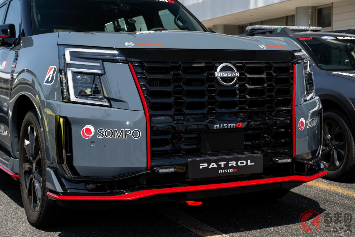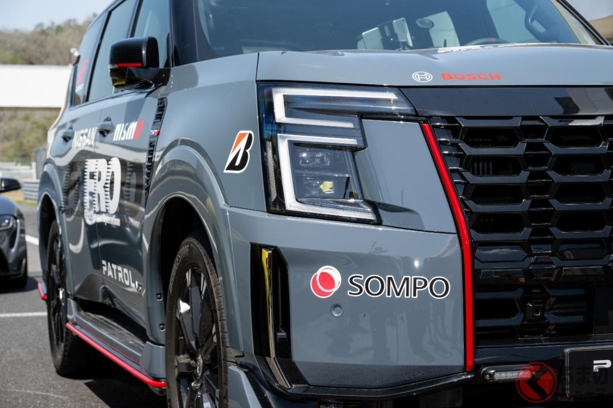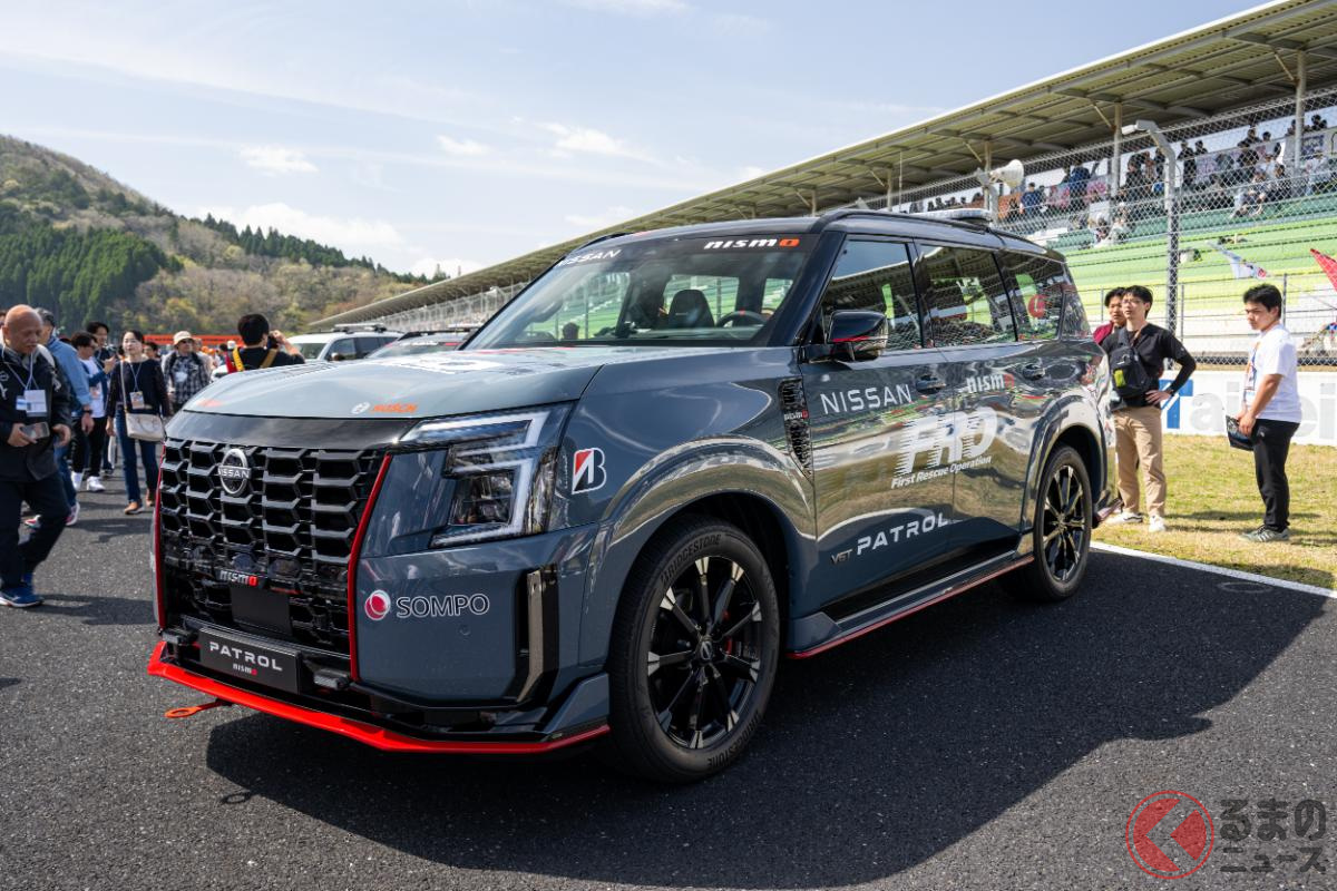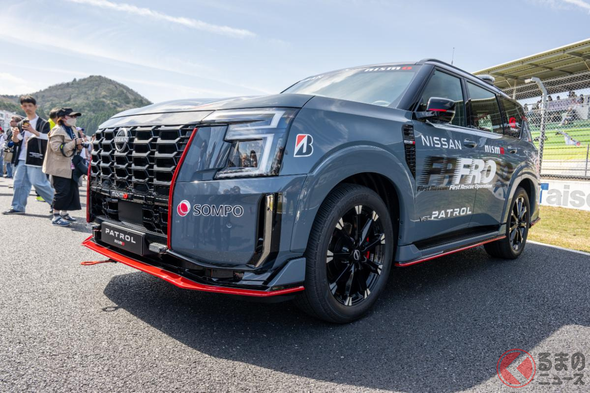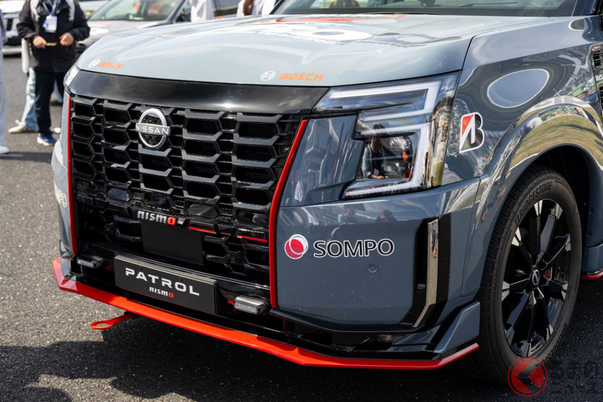 3.5L V6ツインターボで495馬力! 日産新型「超速そうな巨大SUV」公開! 標準は27年発売だけどドデカグリルの「パトロールNISMO」出る? スーパーGTに贈呈で聞いてみた